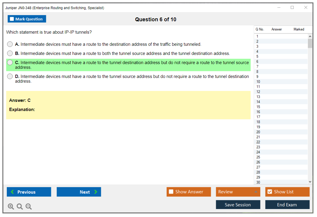 The Juniper JN0-348 (Enterprise Routing and Switching, Specialist) exam is designed to validate the skills and knowledge of networking professionals in implementing, configuring, and troubleshooting Juniper Networks Junos OS, as well as understanding advanced routing and switching technologies.