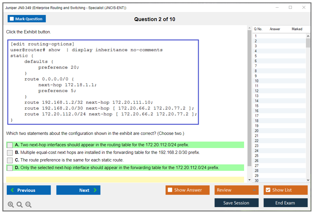 The Juniper JN0-349 exam focuses on validating the skills and knowledge required for configuring and troubleshooting Junos-based enterprise routing and switching platforms. It is part of the Juniper Networks Certification Program (JNCP) and is aimed at professionals seeking to demonstrate their expertise in enterprise networking.