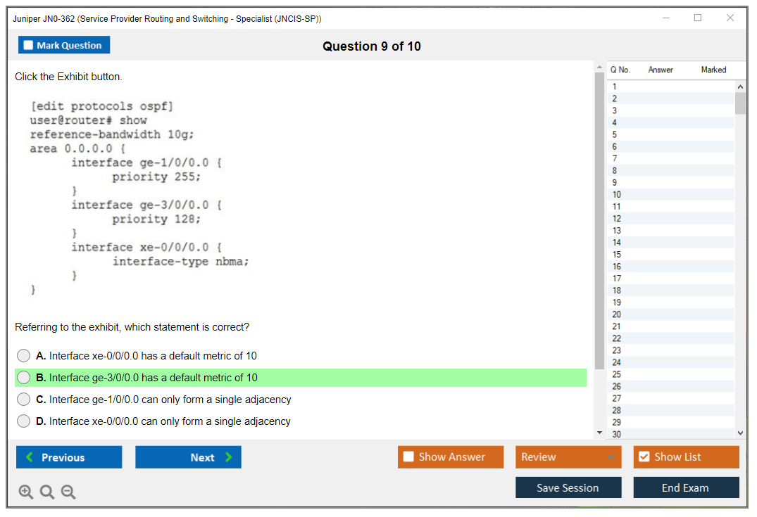 The Juniper JN0-362 exam, also known as the Service Provider Routing and Switching - Specialist (JNCIS-SP), is designed for networking professionals with intermediate knowledge of routing and switching implementations in Juniper Networks service provider environments.