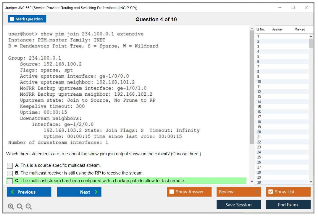 The Juniper JN0-663 exam, also known as the Service Provider Routing and Switching Professional (JNCIP-SP), is designed for experienced networking professionals with advanced knowledge of the Junos operating system and related technologies. It validates the candidate's ability to deploy, configure, manage, and troubleshoot Juniper Networks service provider routing and switching solutions.