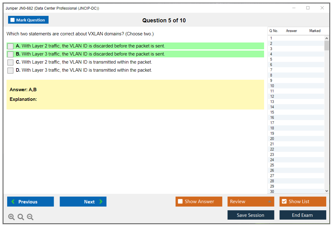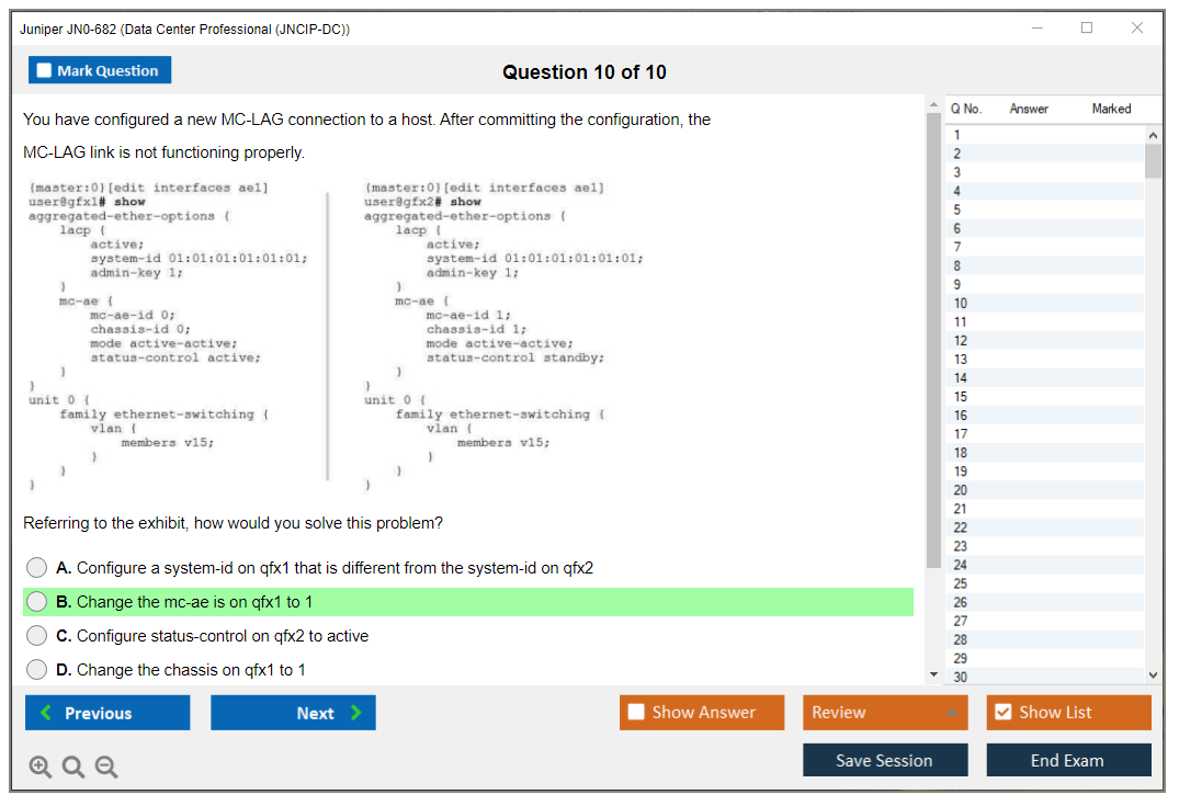 The Juniper JN0-682 exam is a professional-level certification exam that focuses on data center technologies, including Junos software, data center switching, and routing, as well as various protocols and best practices.