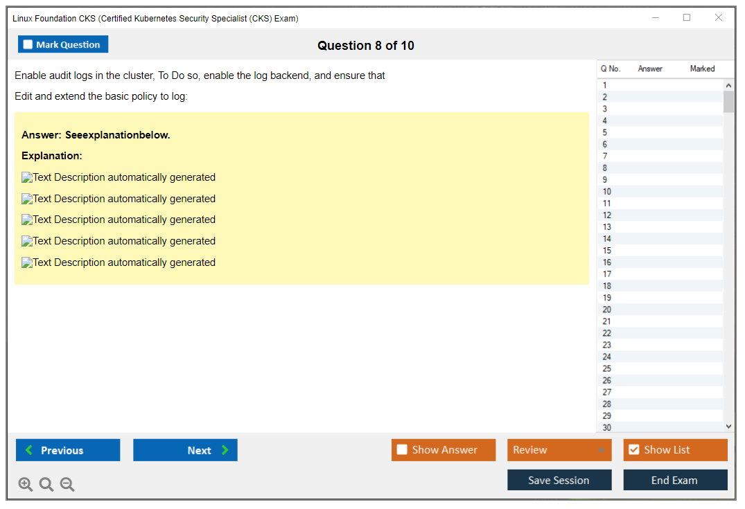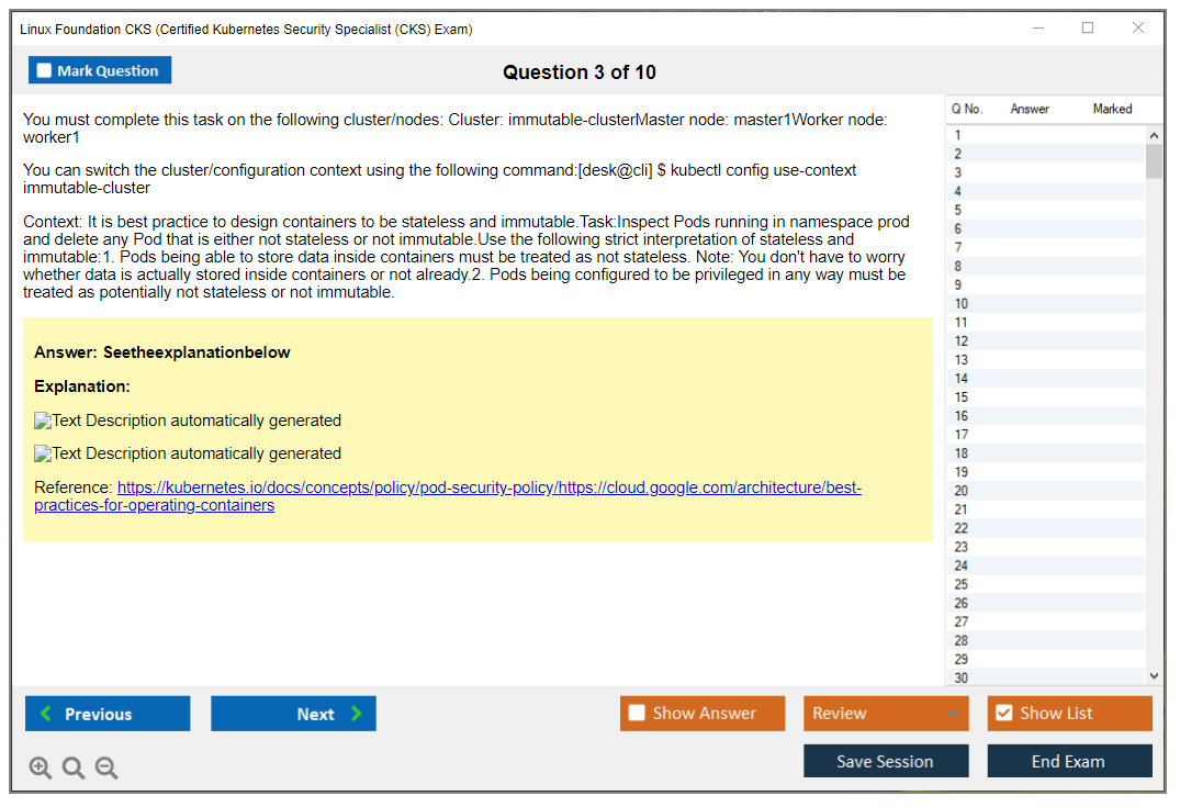 Sample questions for the Linux Foundation CKS Exam can be found on the official Linux Foundation training website or through various Kubernetes training resources and practice exams.