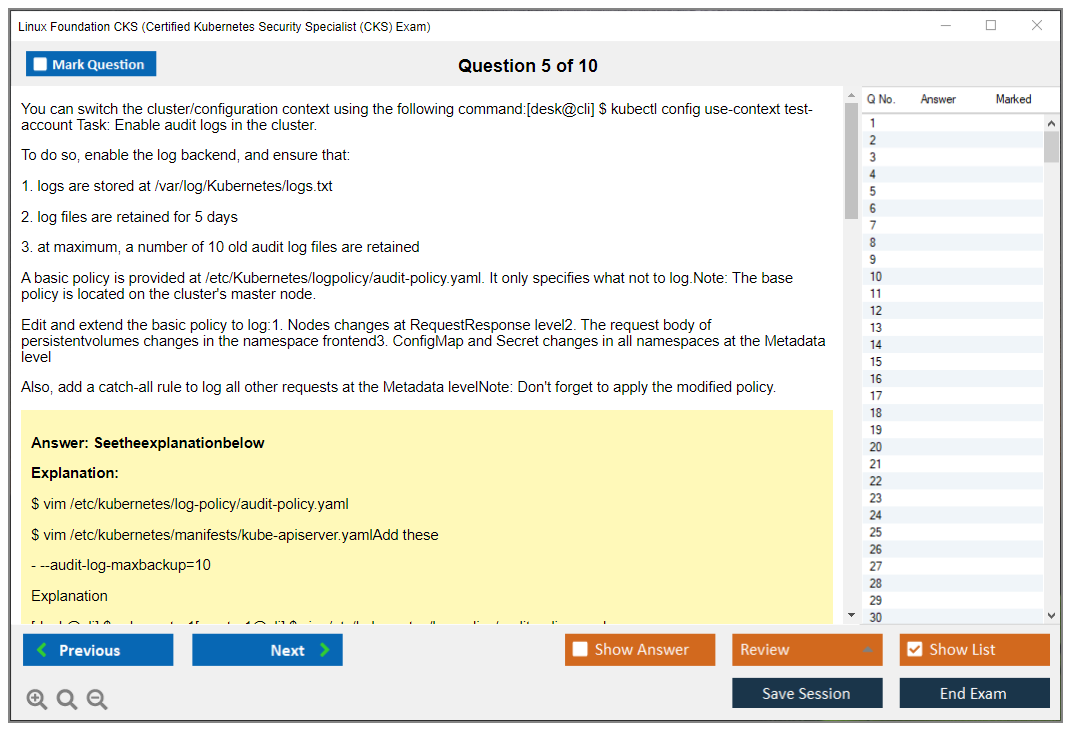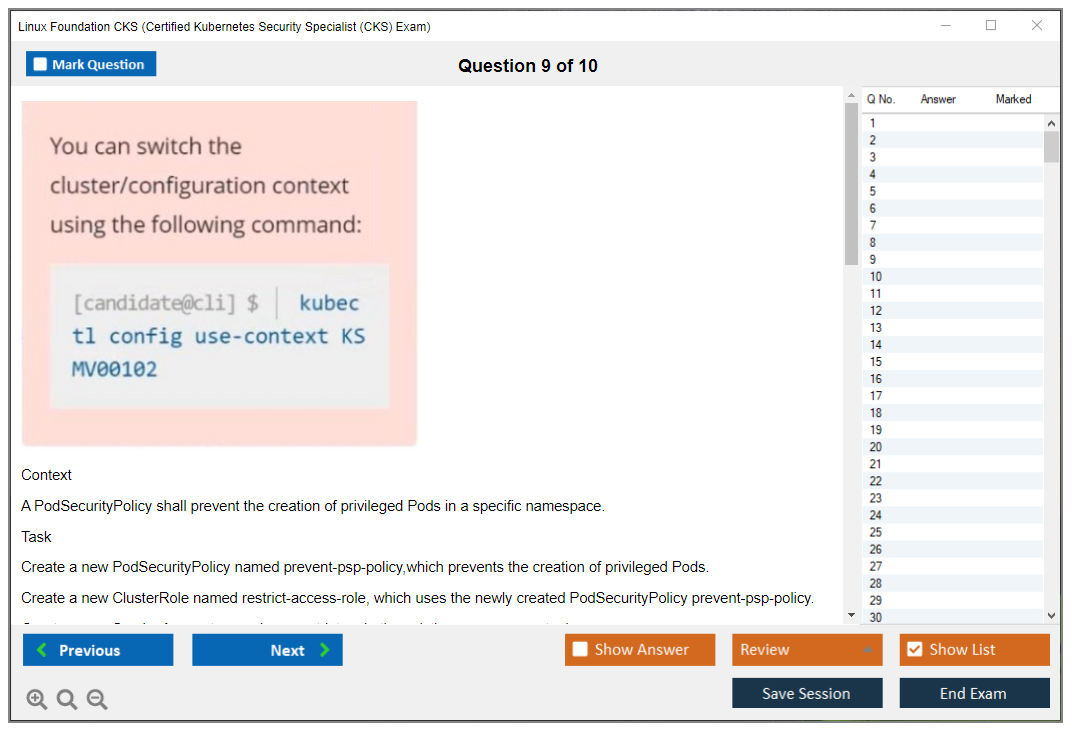 The question format of the Linux Foundation CKS Exam is performance-based, meaning that candidates must complete tasks in a live Kubernetes environment.