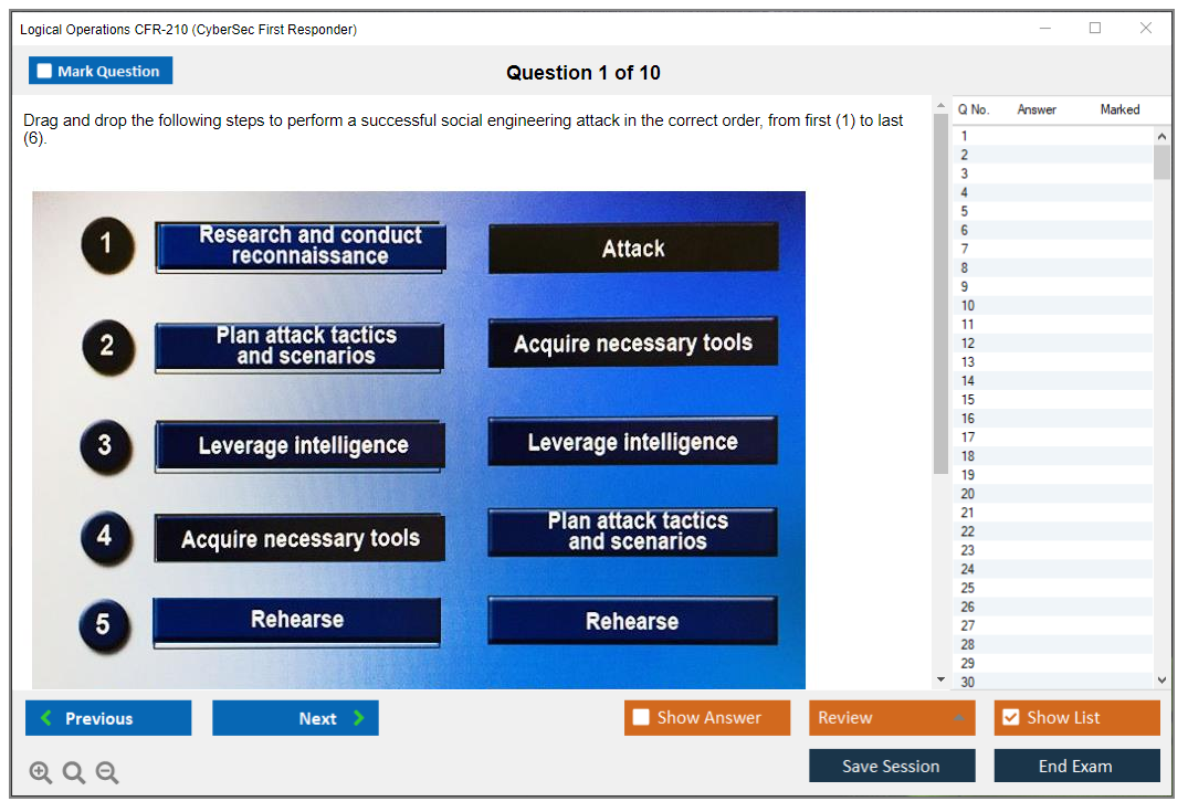 Sample questions for the Logical Operations CFR-210 Exam can be found on the official Logical Operations website or through various study guides and practice test providers.