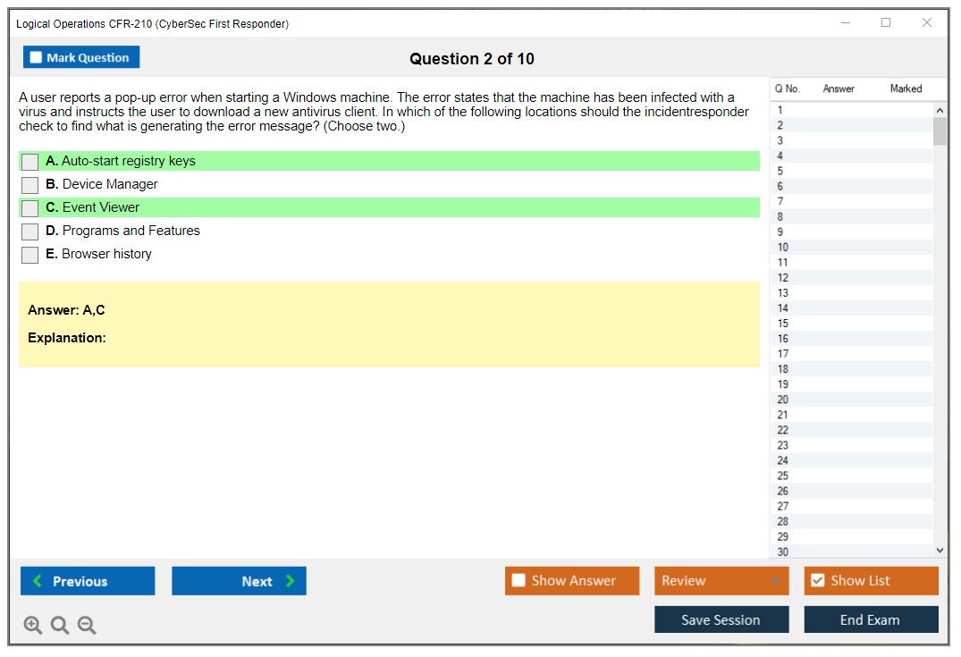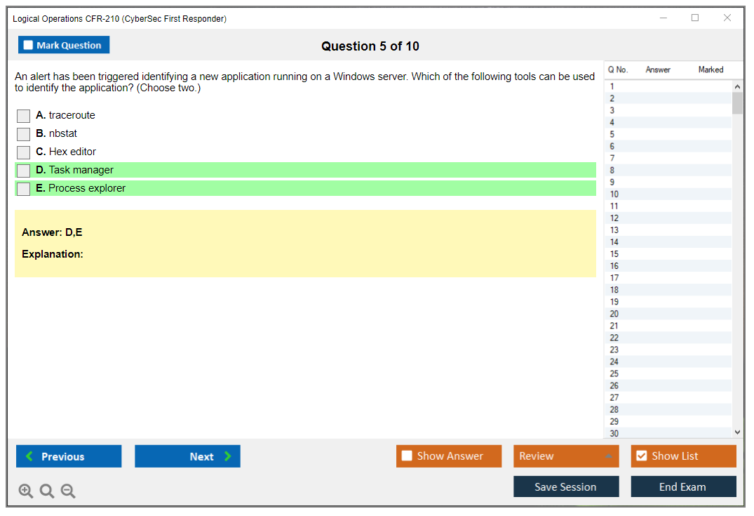 The Logical Operations CFR-210 (Logical Operations CyberSec First Responder) exam is designed to validate the skills and knowledge required to detect and respond to cybersecurity threats. It covers topics such as threat detection, analysis, and response, as well as incident handling and vulnerability assessment.