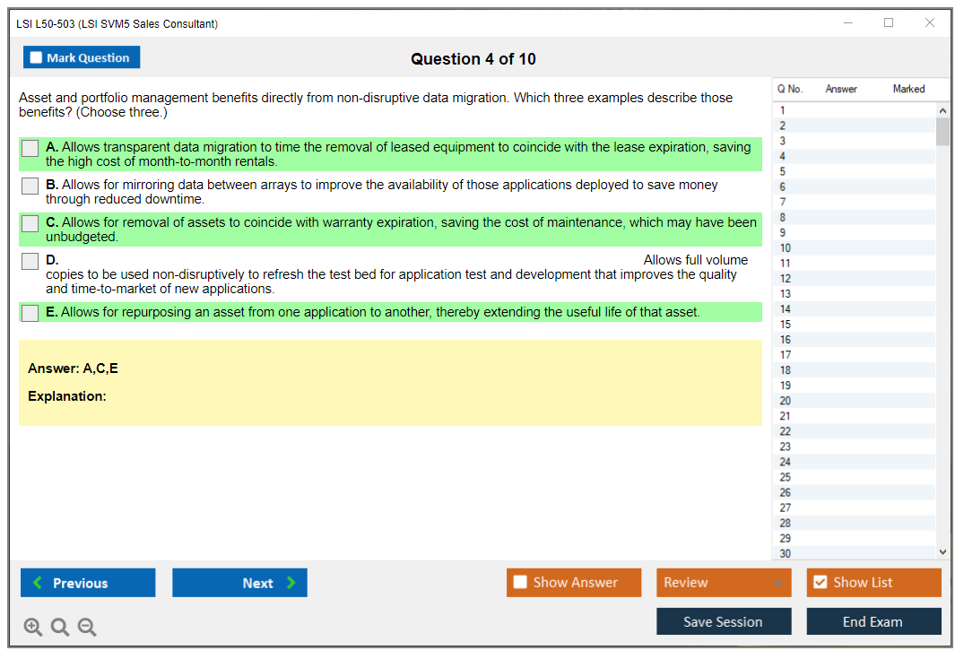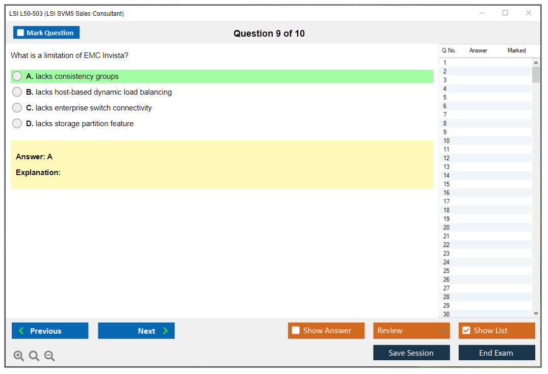 The LSI L50-503 (LSI SVM5 Sales Consultant) exam is designed to test the knowledge and skills of sales consultants in selling LSI SVM5 solutions. It covers various aspects of the product, including features, benefits, and competitive positioning.