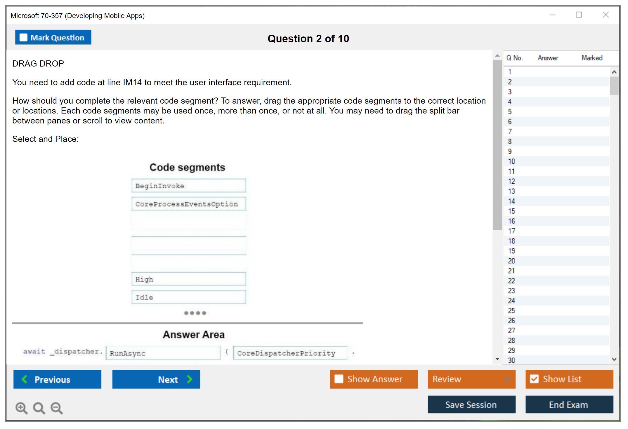 Note: Microsoft 70-357 (Developing Mobile Apps) will not receive any new updates.