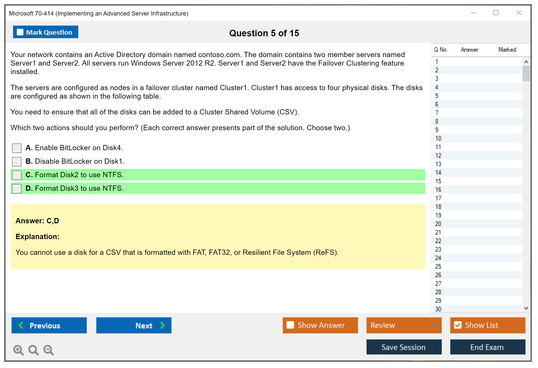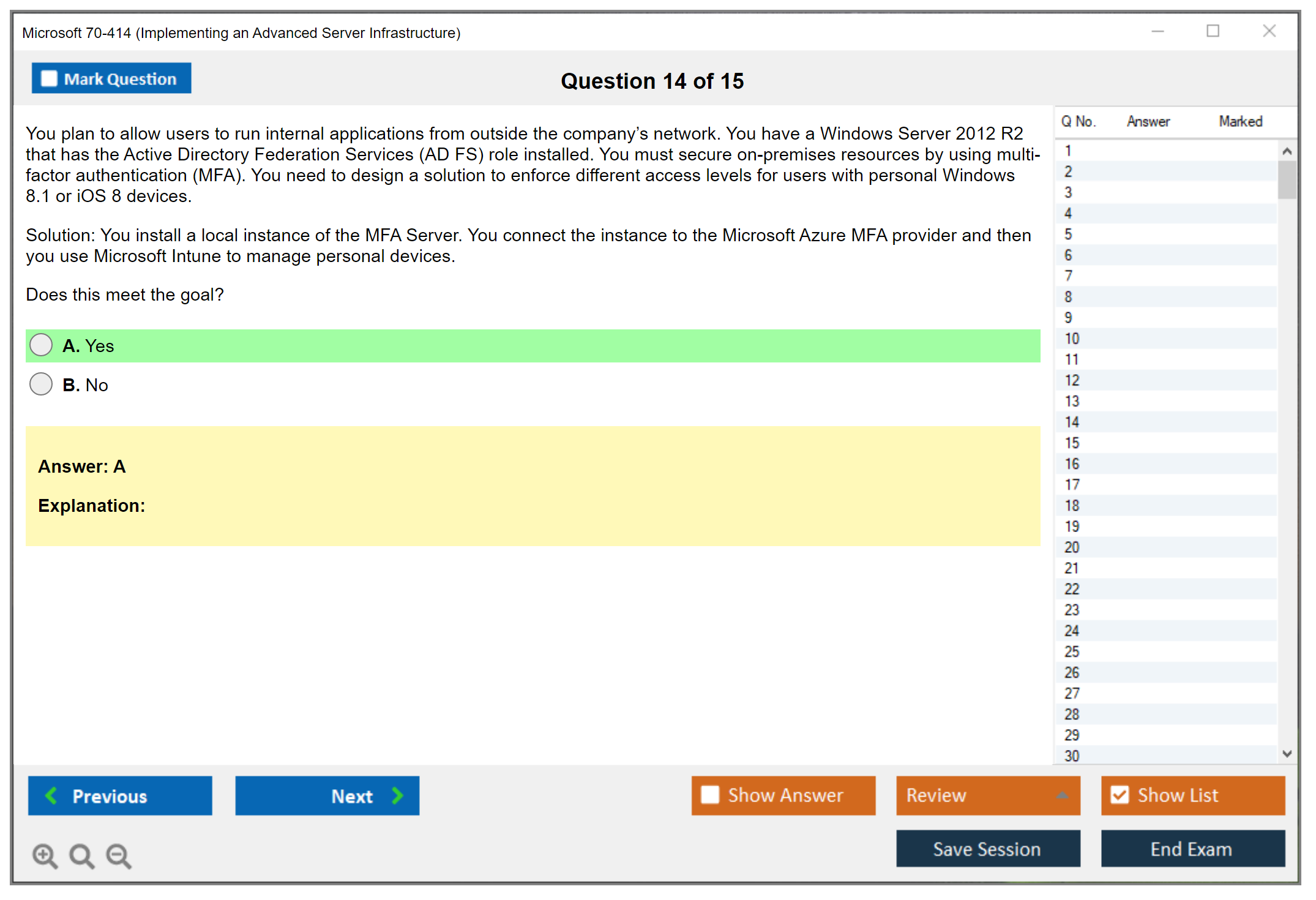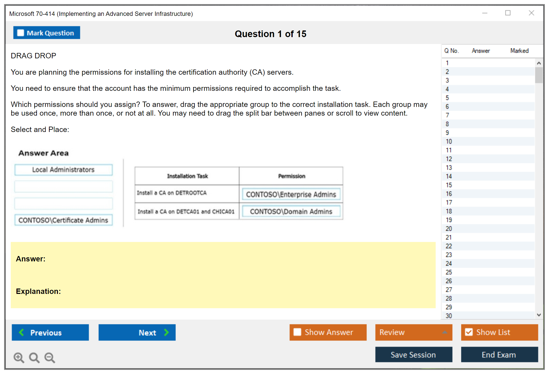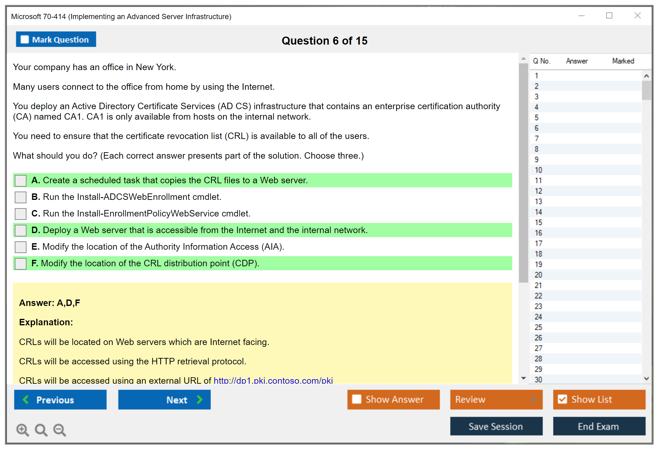 Note: Microsoft 70-414 (Implementing an Advanced Server Infrastructure) will not receive any new updates.