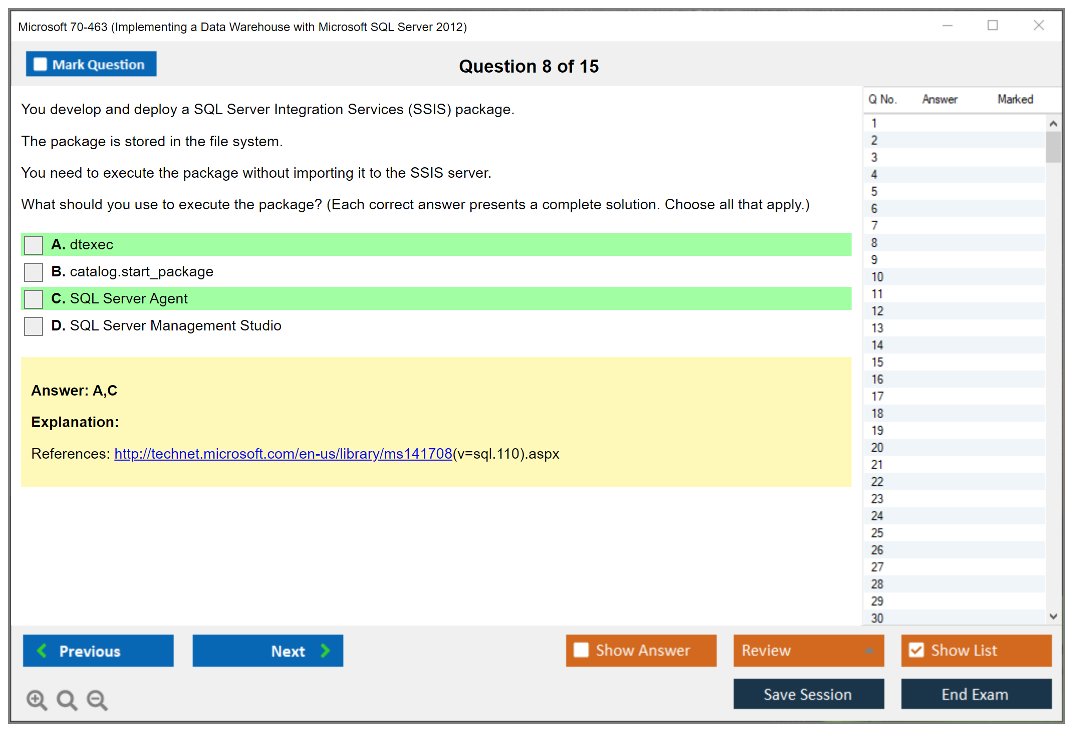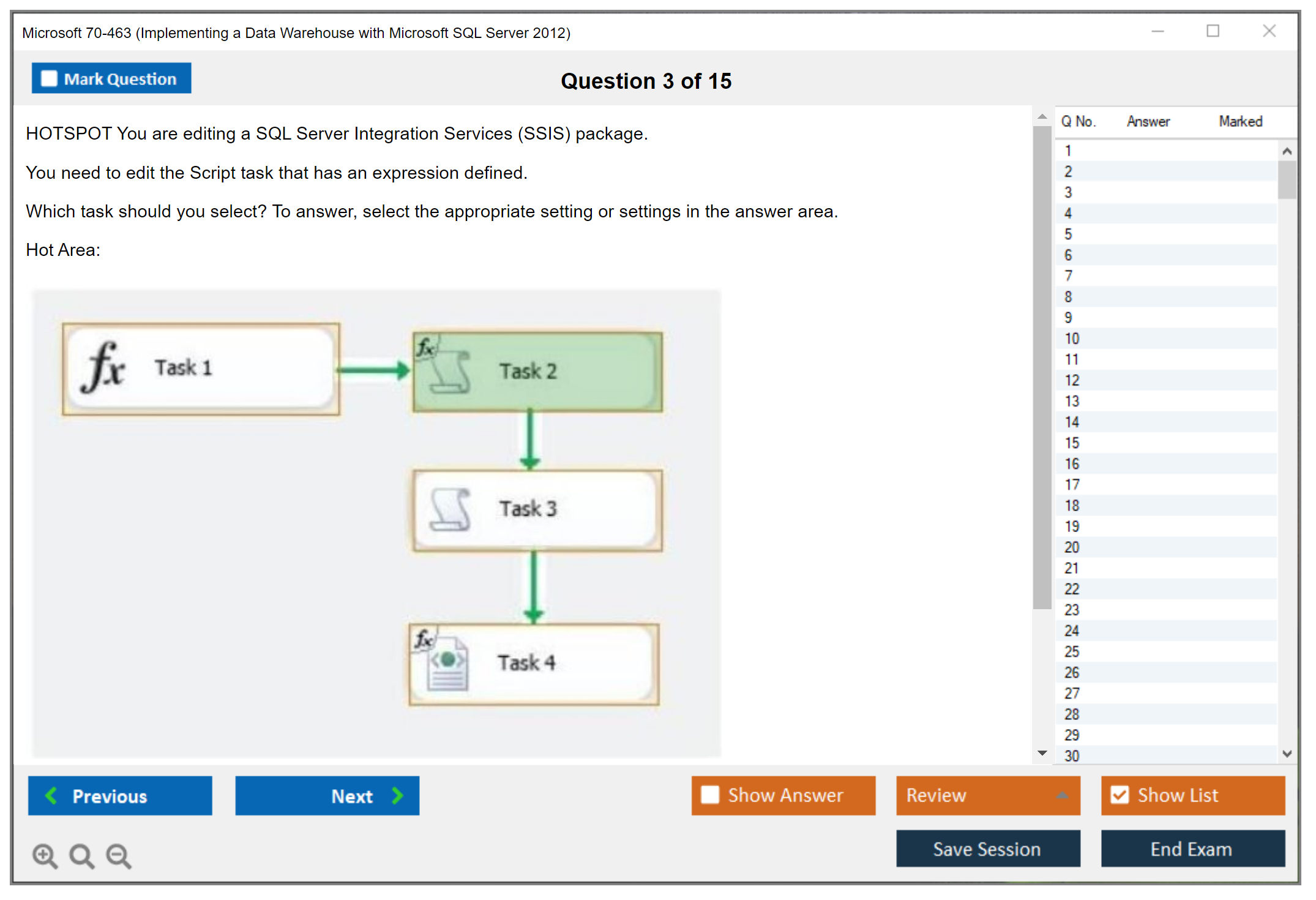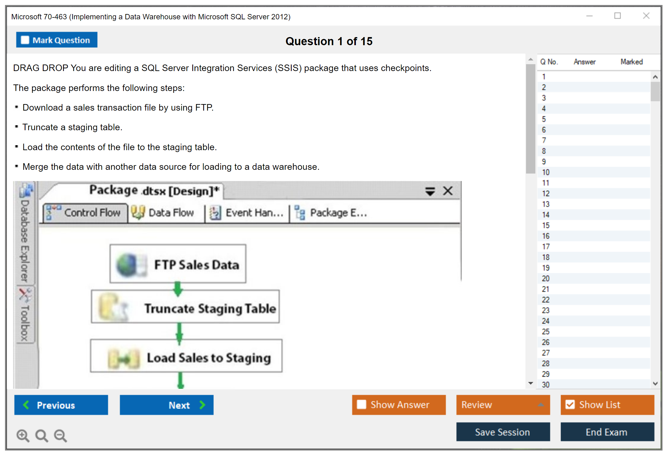 Note: Microsoft 70-463 (Implementing a Data Warehouse with Microsoft SQL Server 2012) will not receive any new updates.