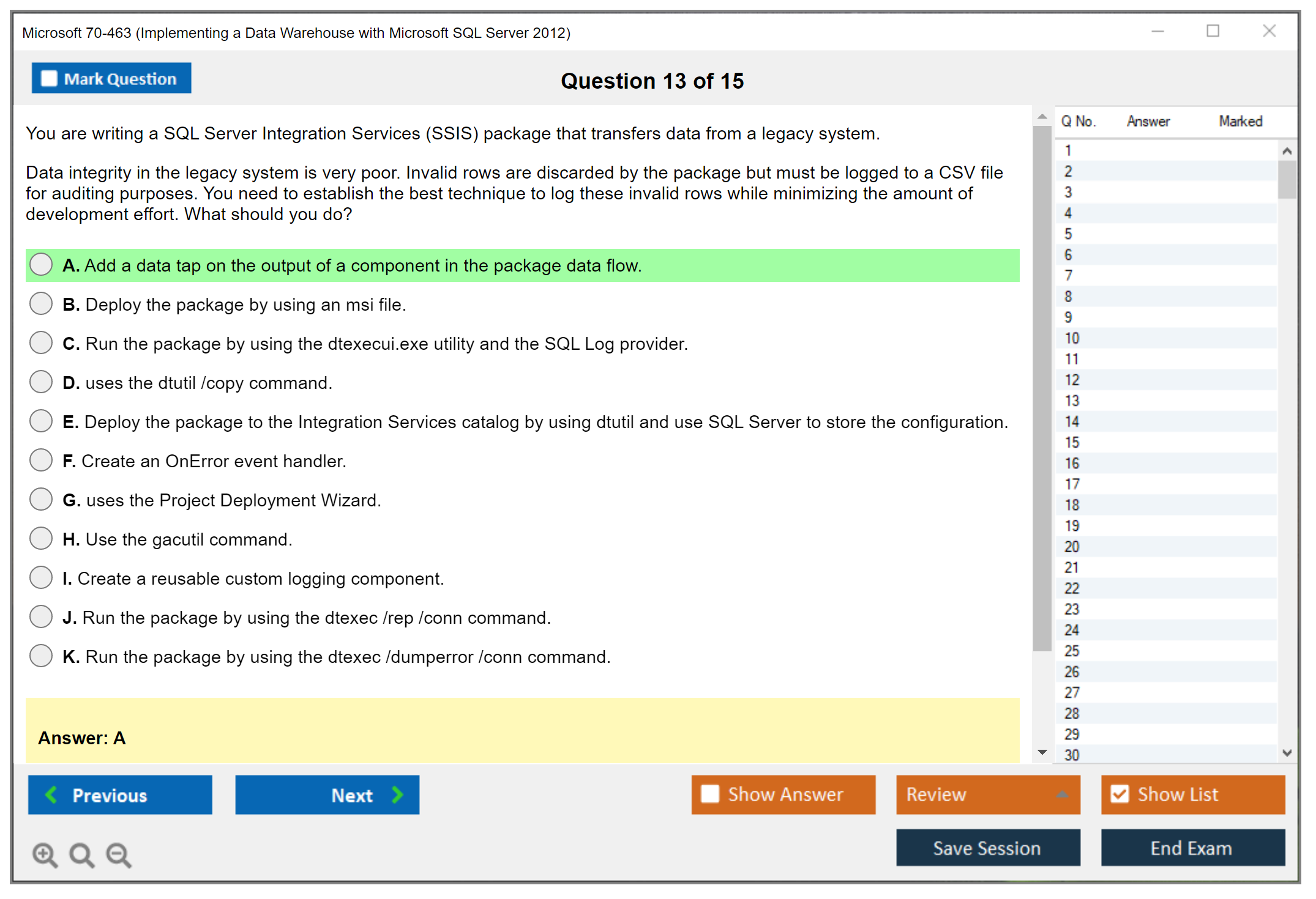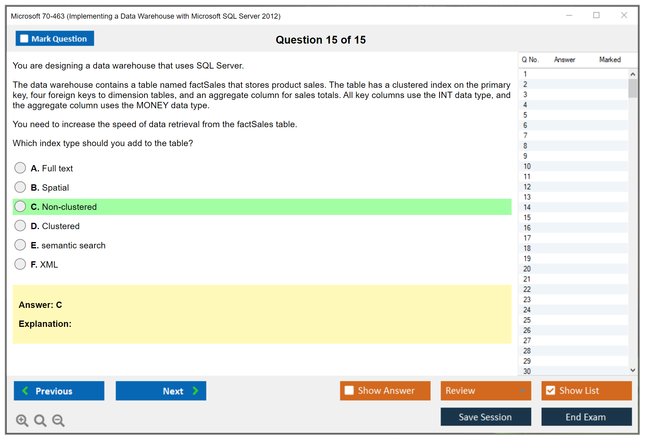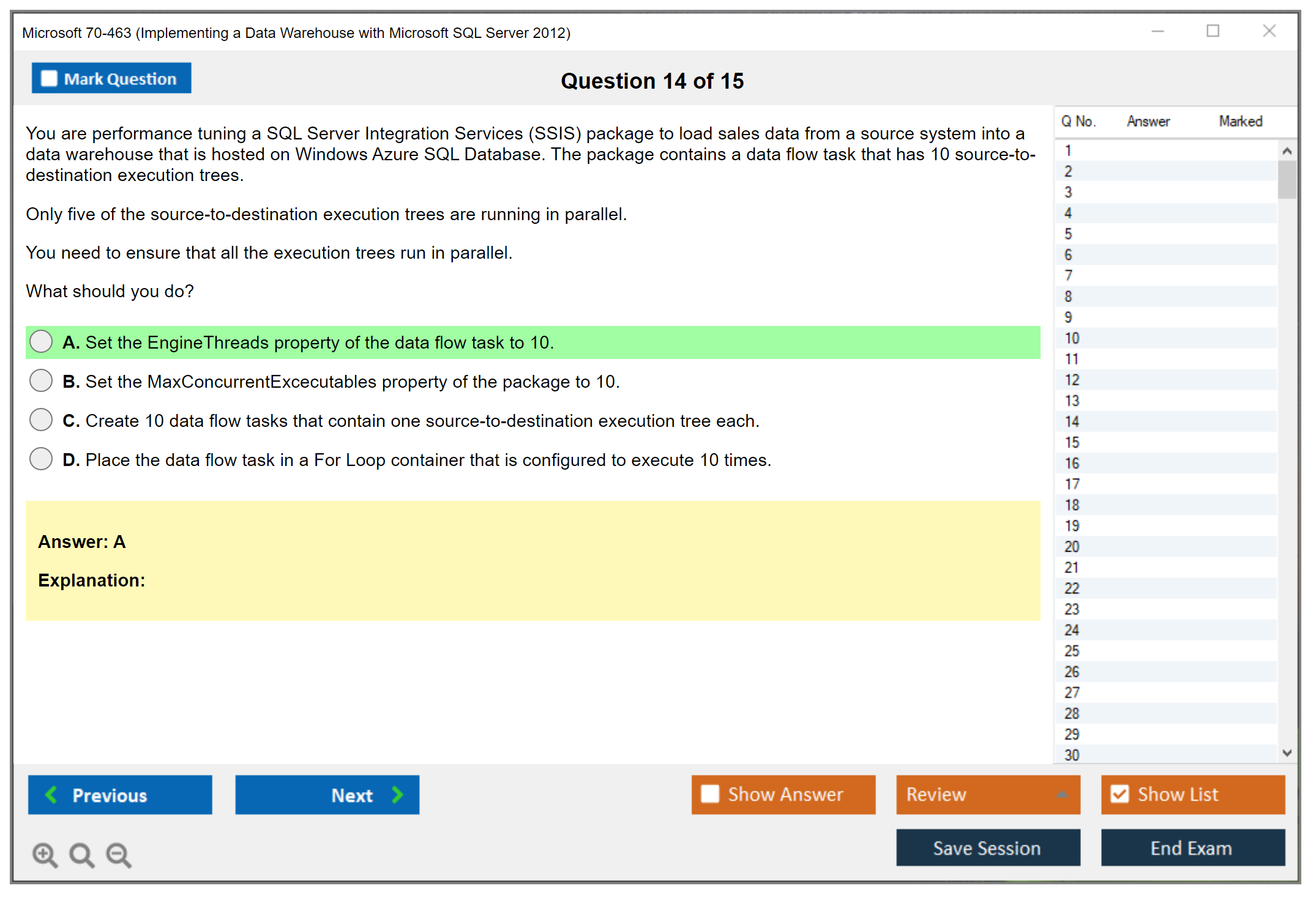 Note: Microsoft 70-463 (Implementing a Data Warehouse with Microsoft SQL Server 2012) will not receive any new updates.