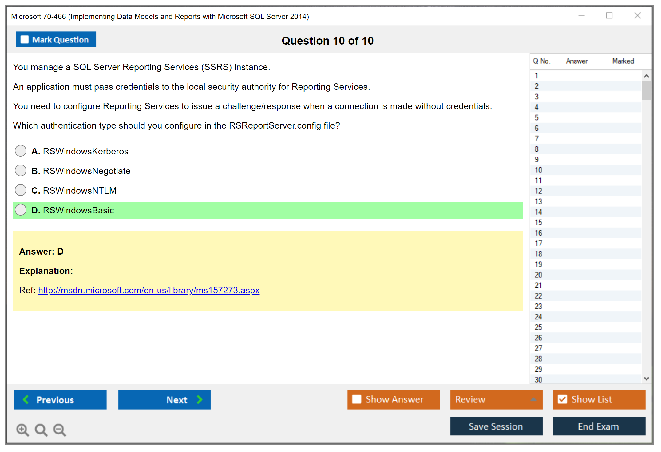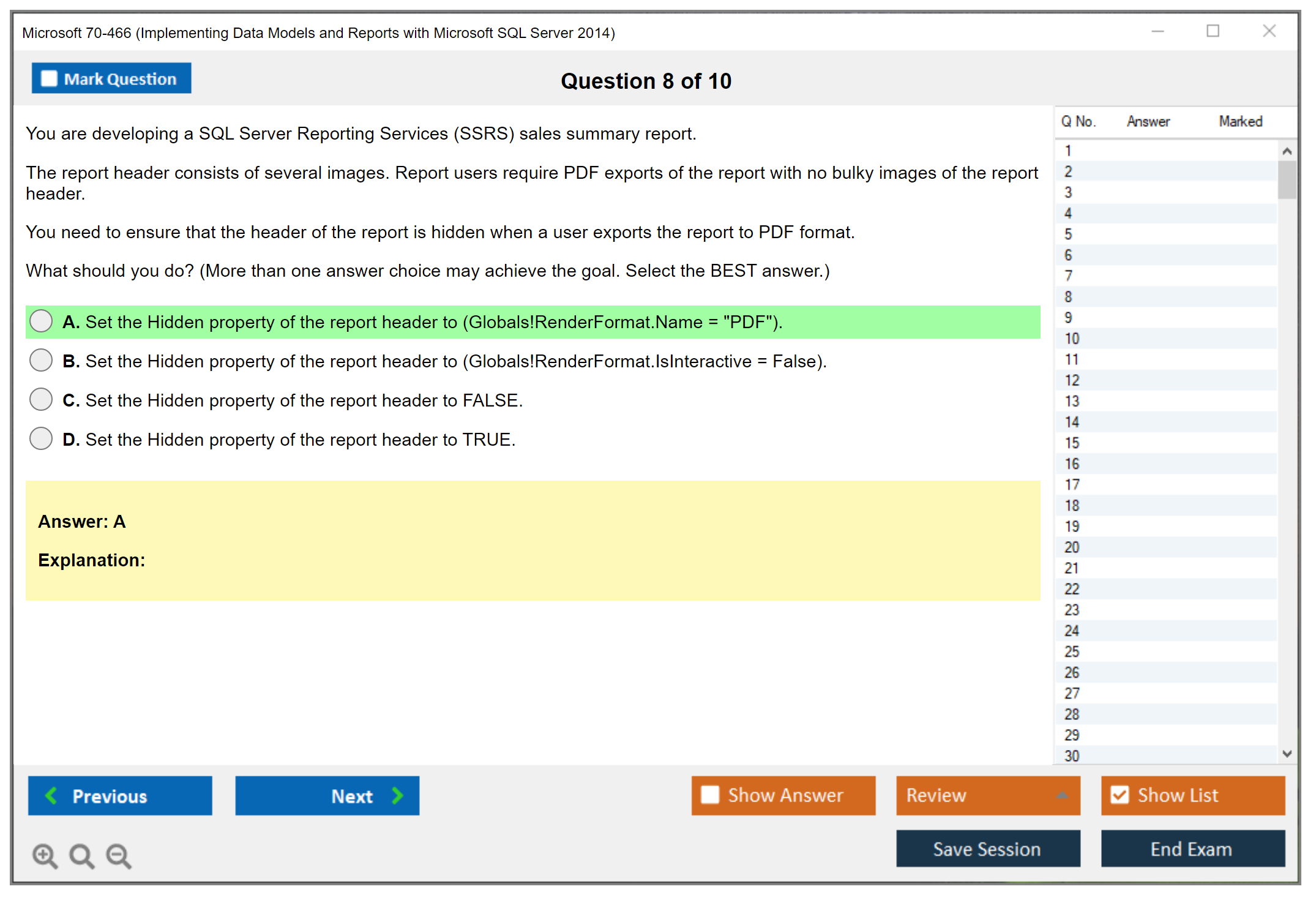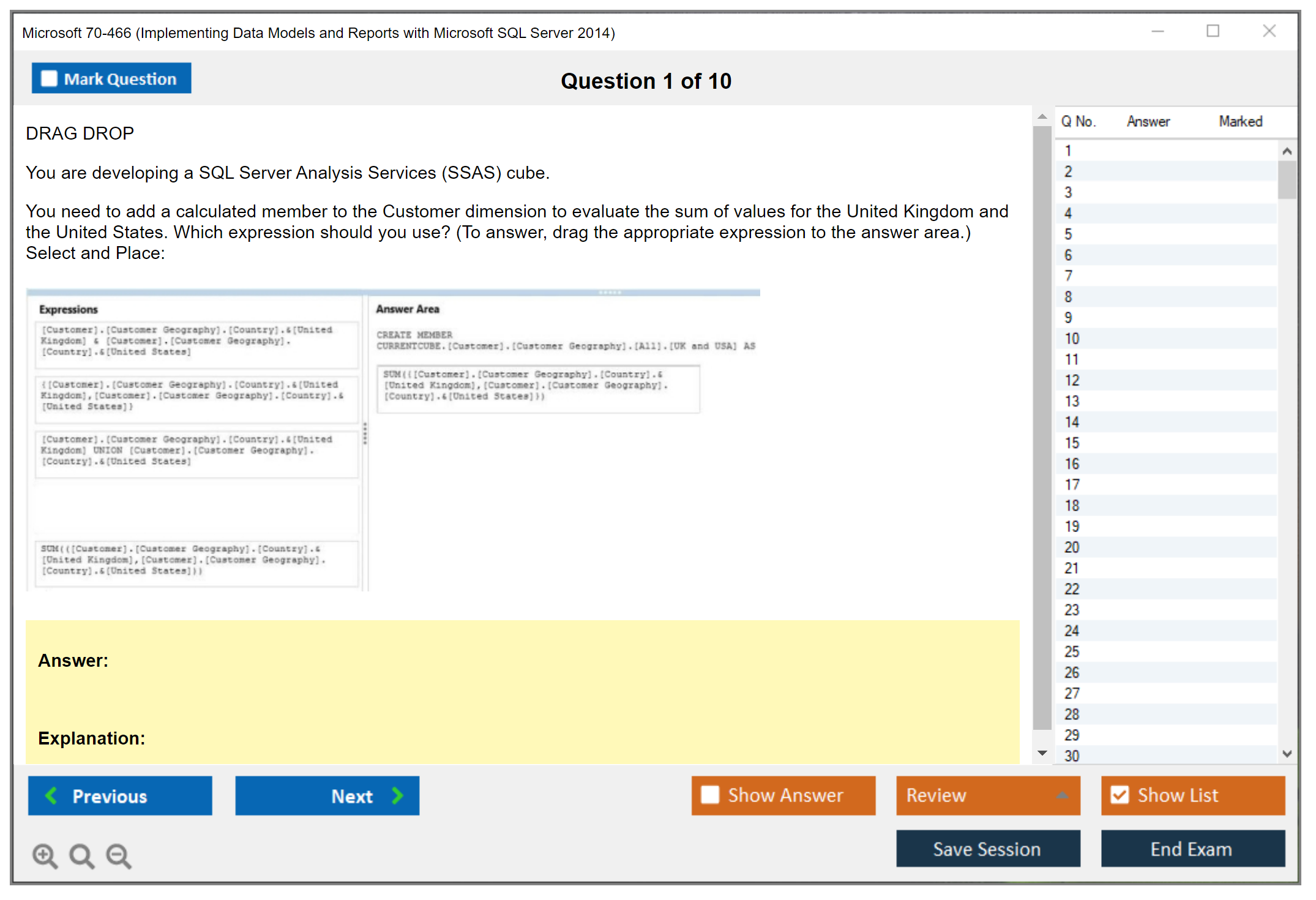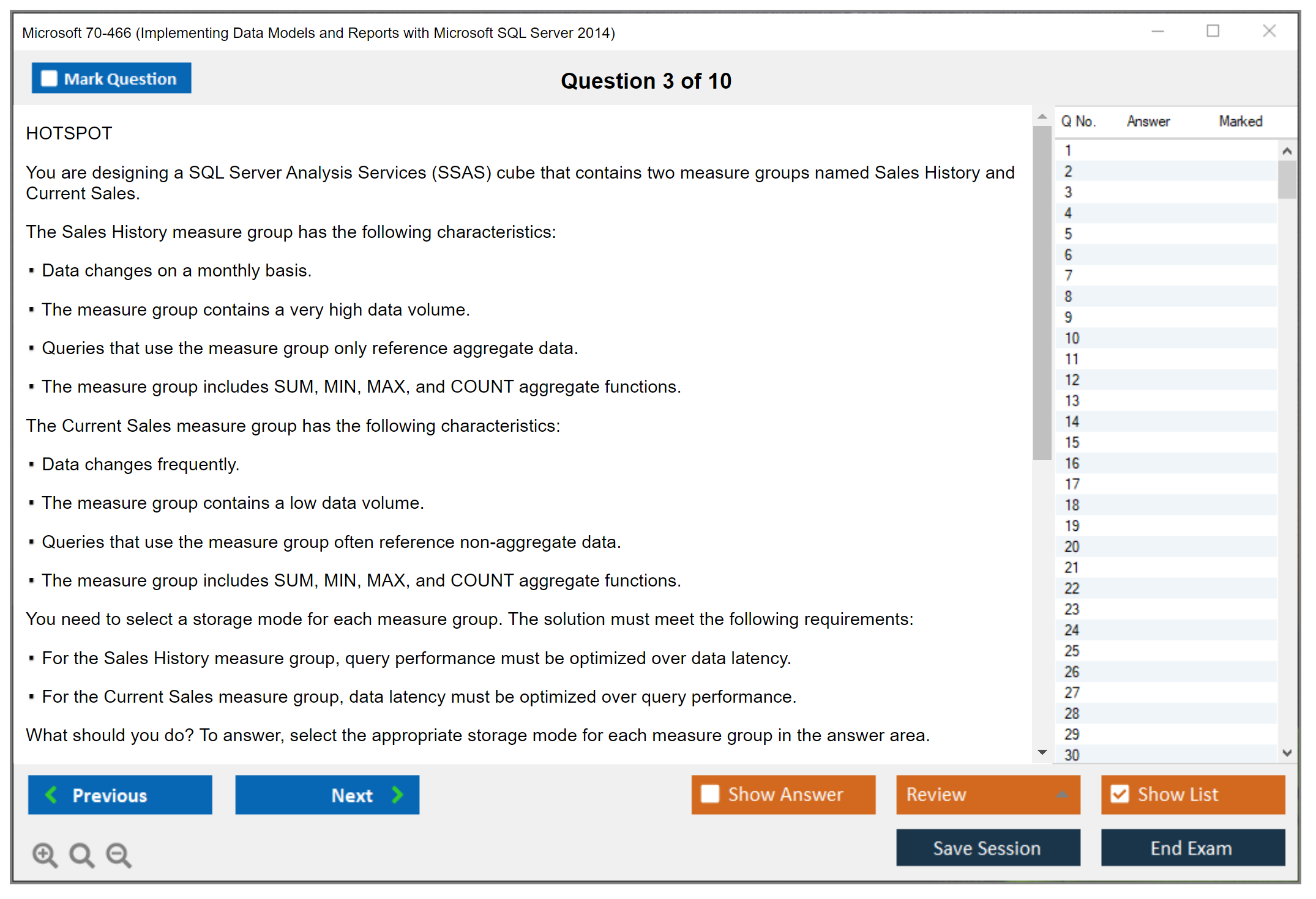 Note: Microsoft 70-466 (Implementing Data Models and Reports with Microsoft SQL Server 2014) will not receive any new updates.
