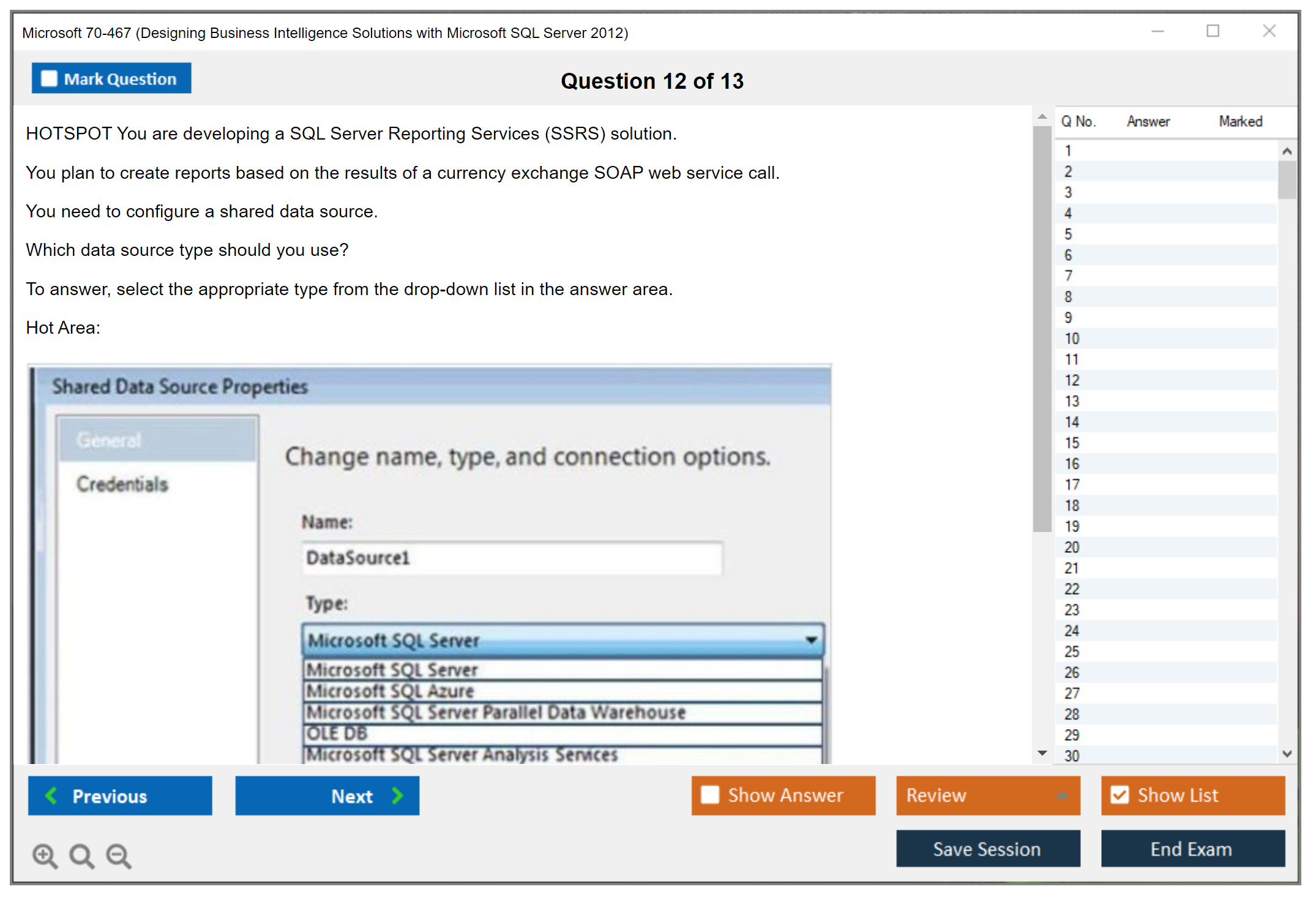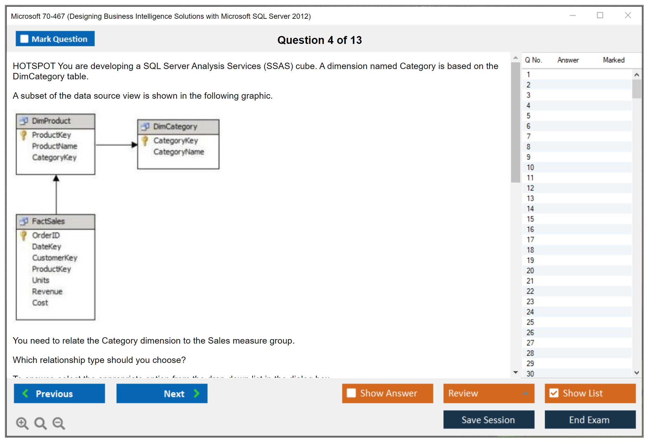Note: Microsoft 70-467 (Designing Business Intelligence Solutions with Microsoft SQL Server 2012) will not receive any new updates.