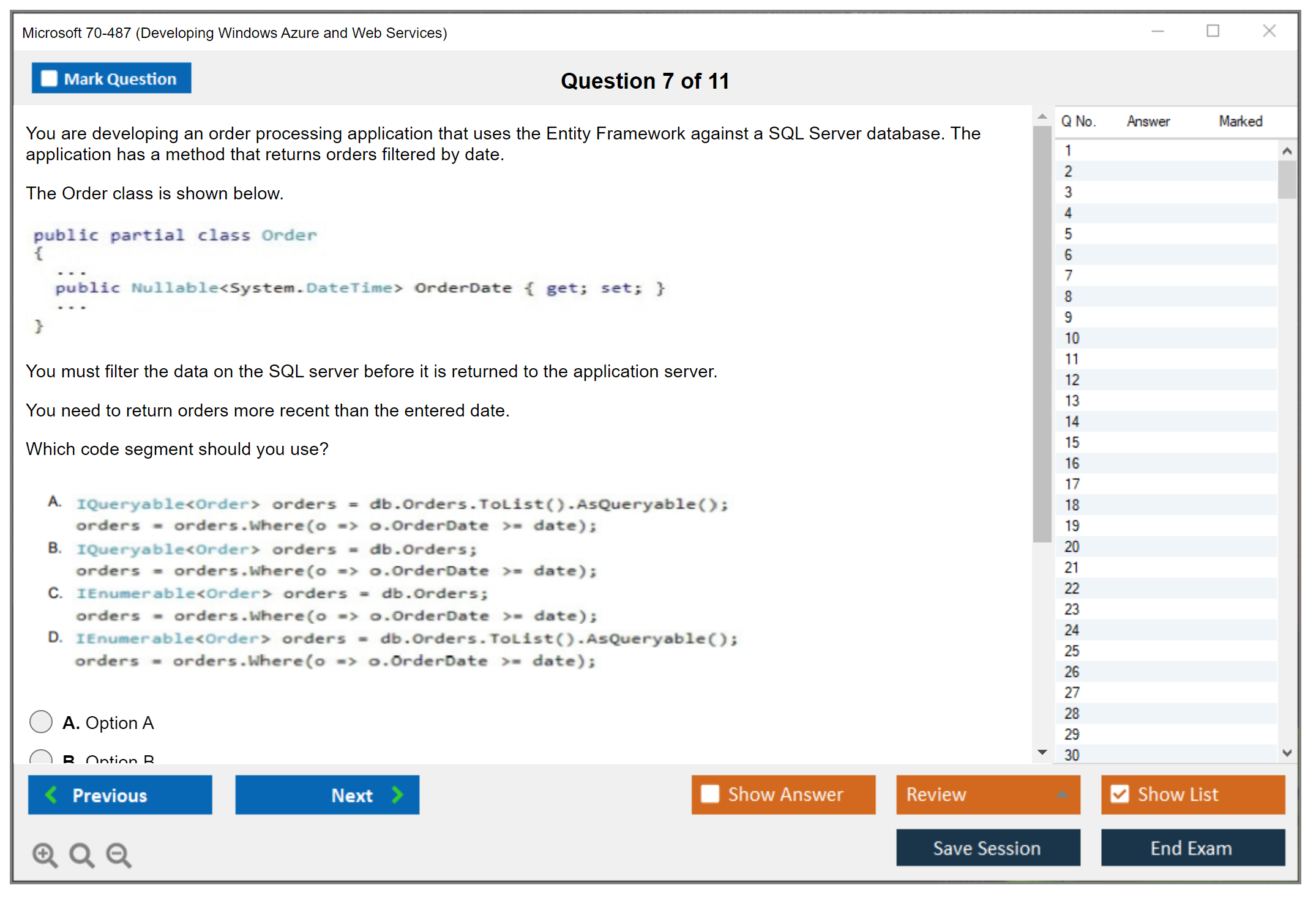What are the Sample Questions of Microsoft 70-487 Exam?