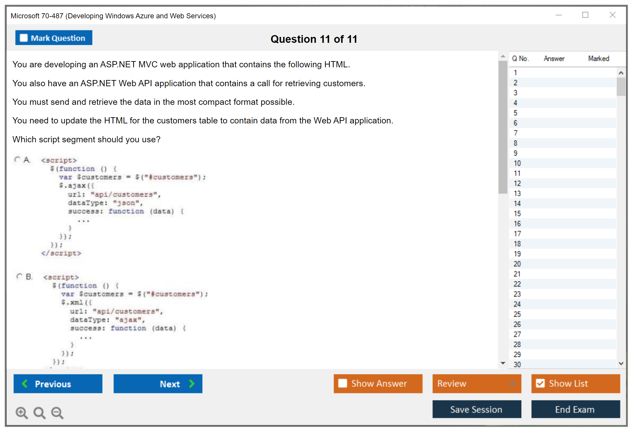 Note: Microsoft 70-487 (Developing Windows Azure and Web Services) will not receive any new updates.