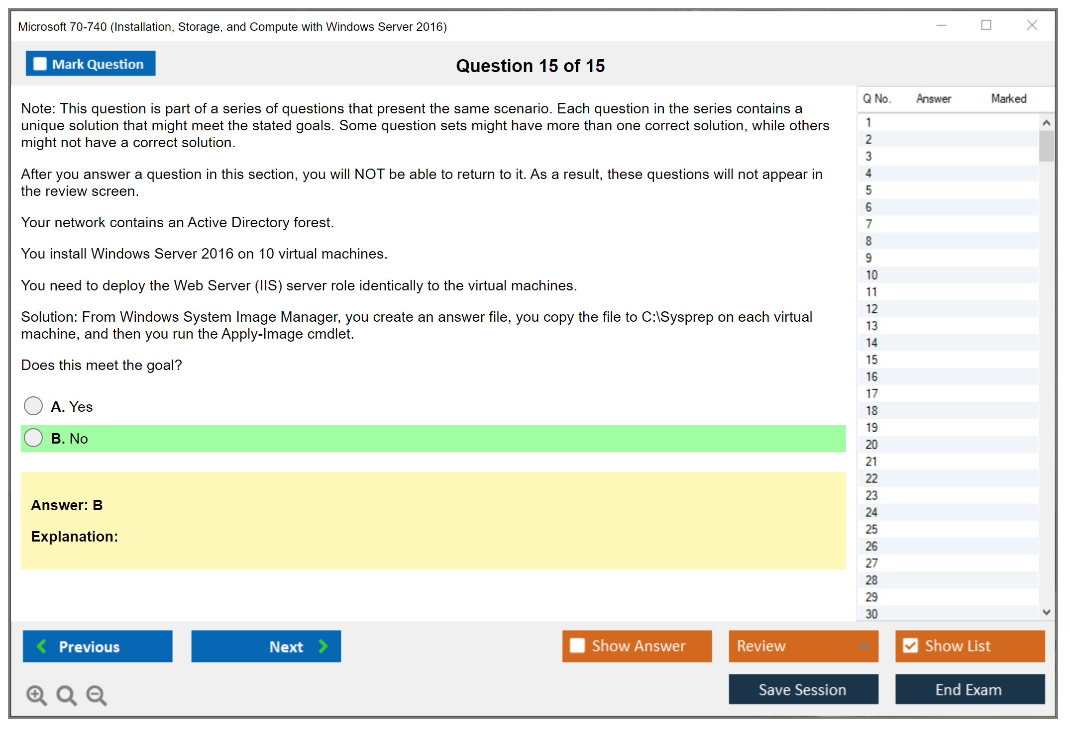 Note: Microsoft 70-740 (Installation, Storage, and Compute with Windows Server 2016) will not receive any new updates.
