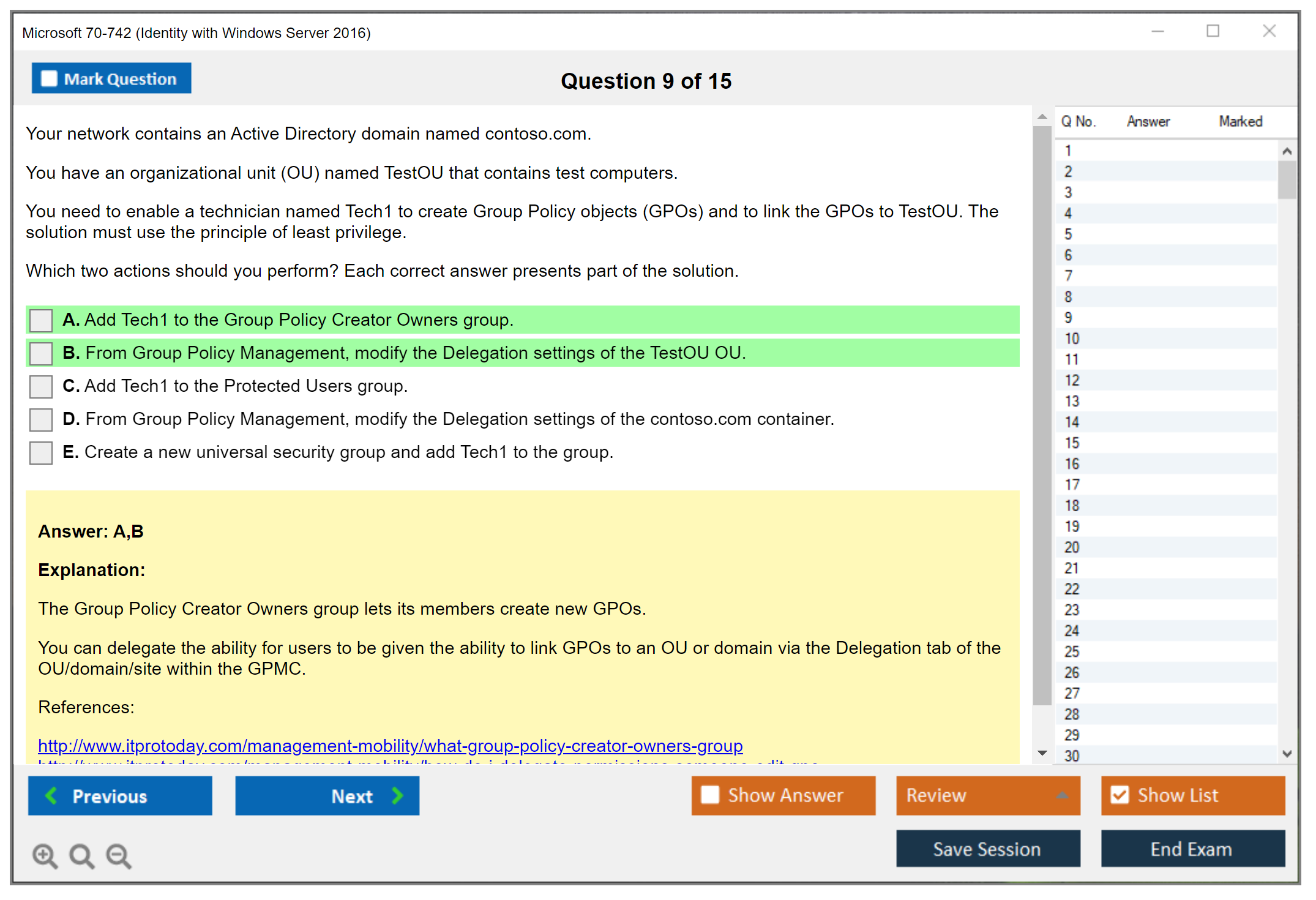 Note: Microsoft 70-742 (Identity with Windows Server 2016) will not receive any new updates.