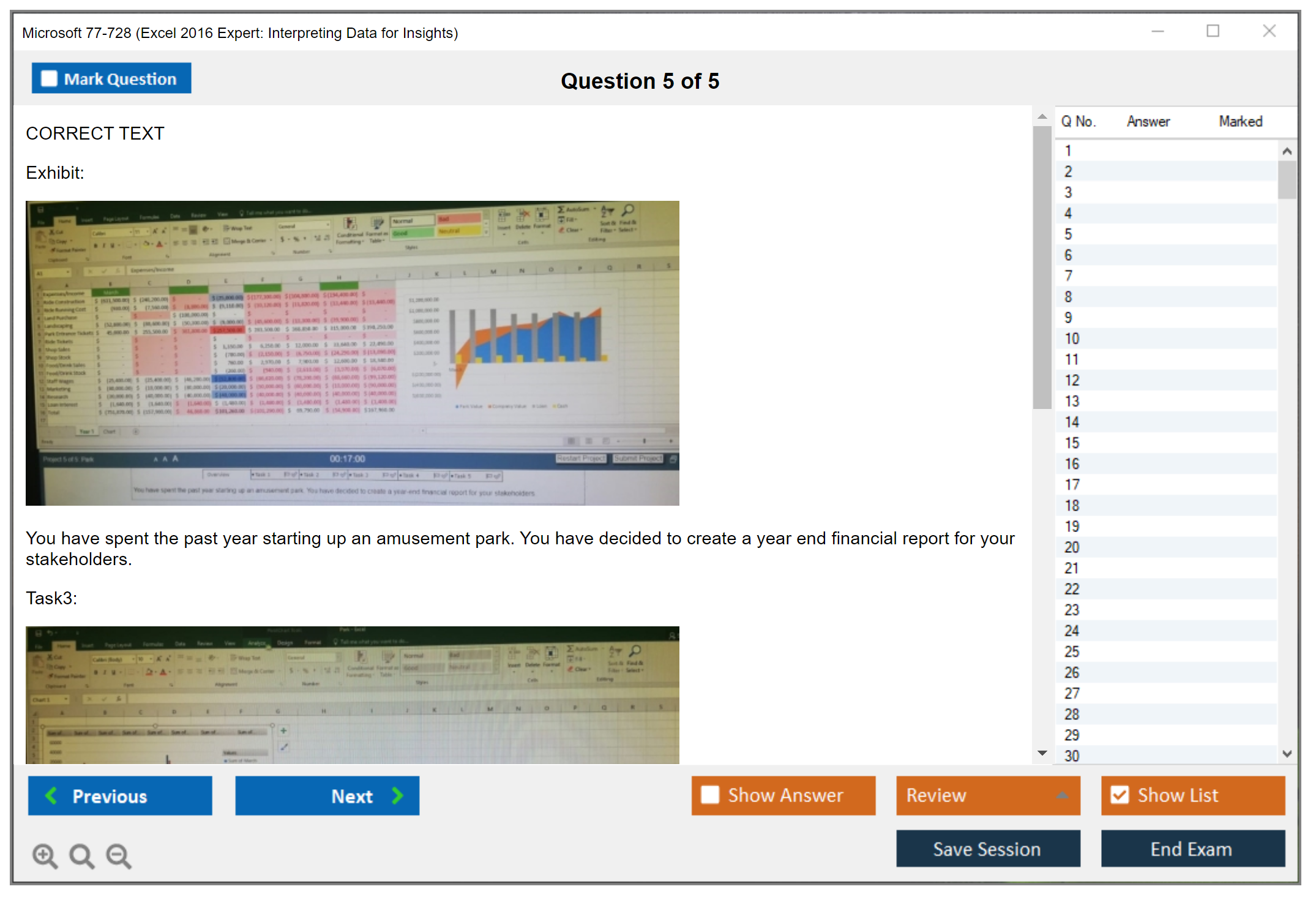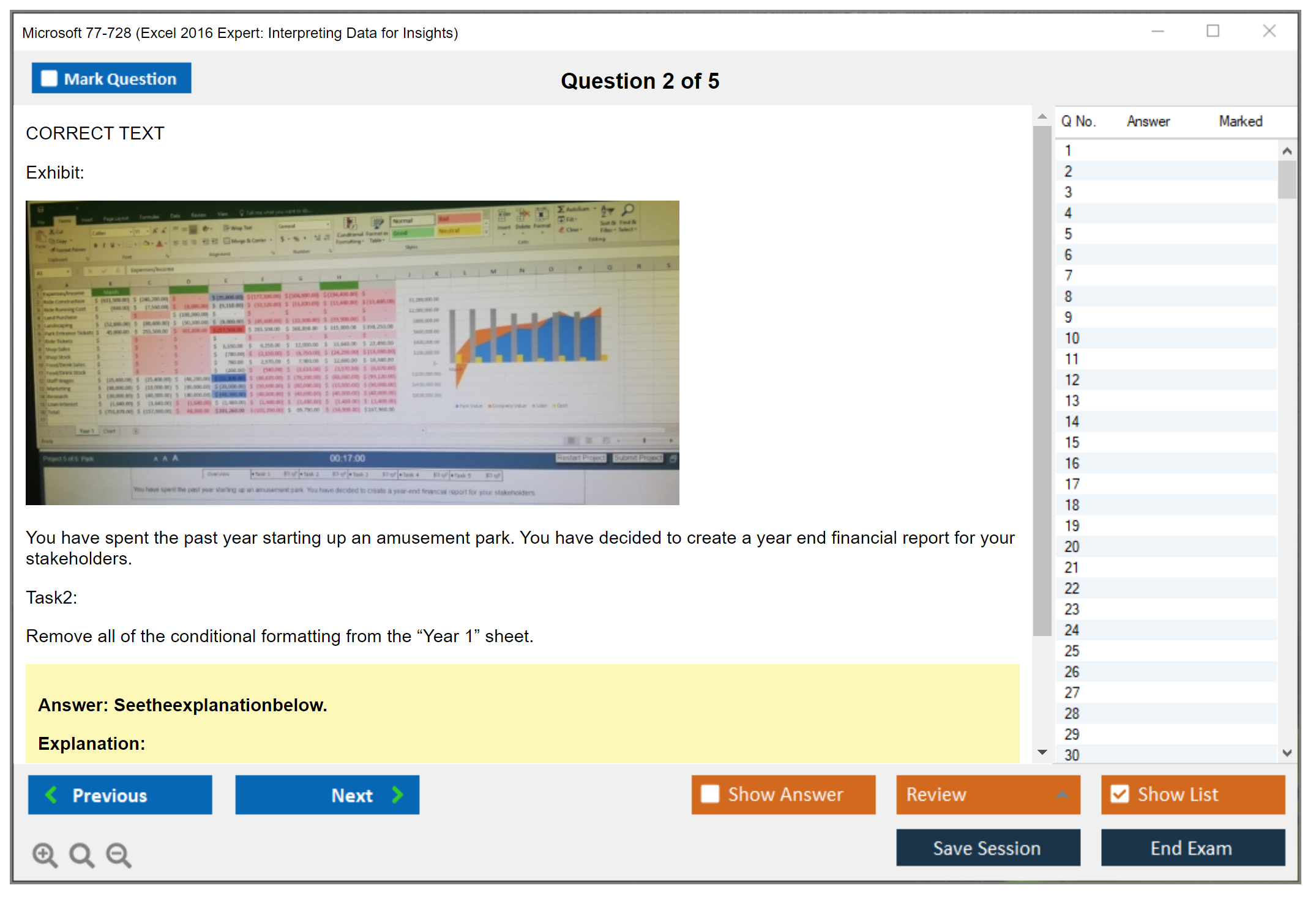 The Microsoft 77-728 (Excel 2016 Expert: Interpreting Data for Insights) exam is designed to assess the skills of individuals in managing and analyzing data using Microsoft Excel 2016 at an expert level. The exam tests the ability to create, manage, and distribute professional spreadsheets for a variety of specialized purposes and situations.