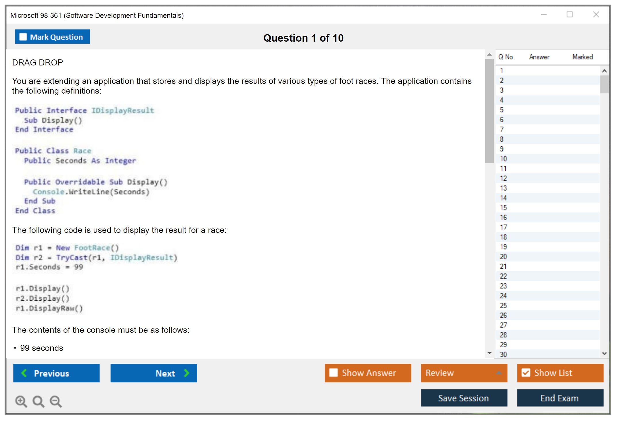 The question format of the Microsoft 98-361 Exam includes multiple-choice questions, drag and drop, and case studies.