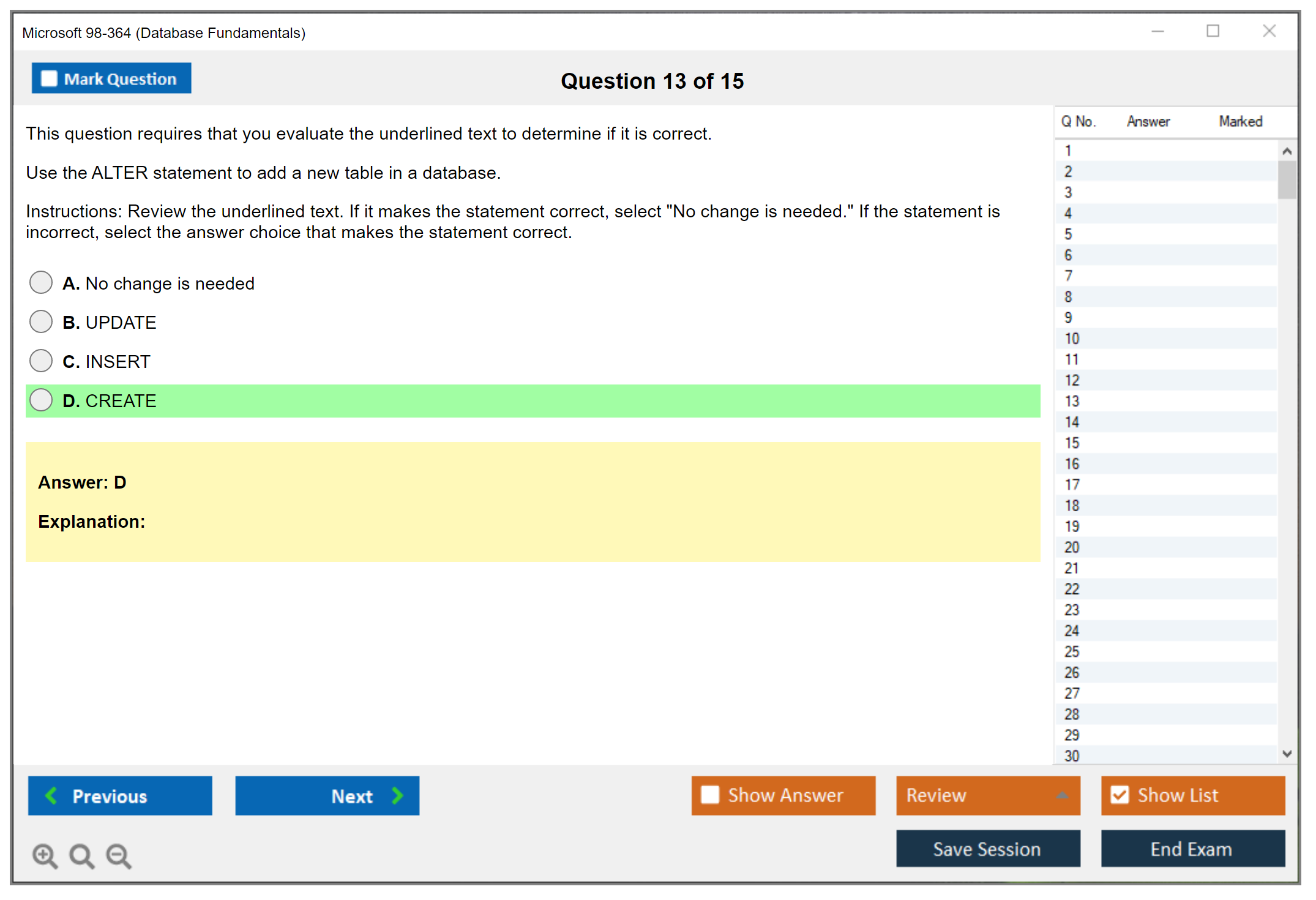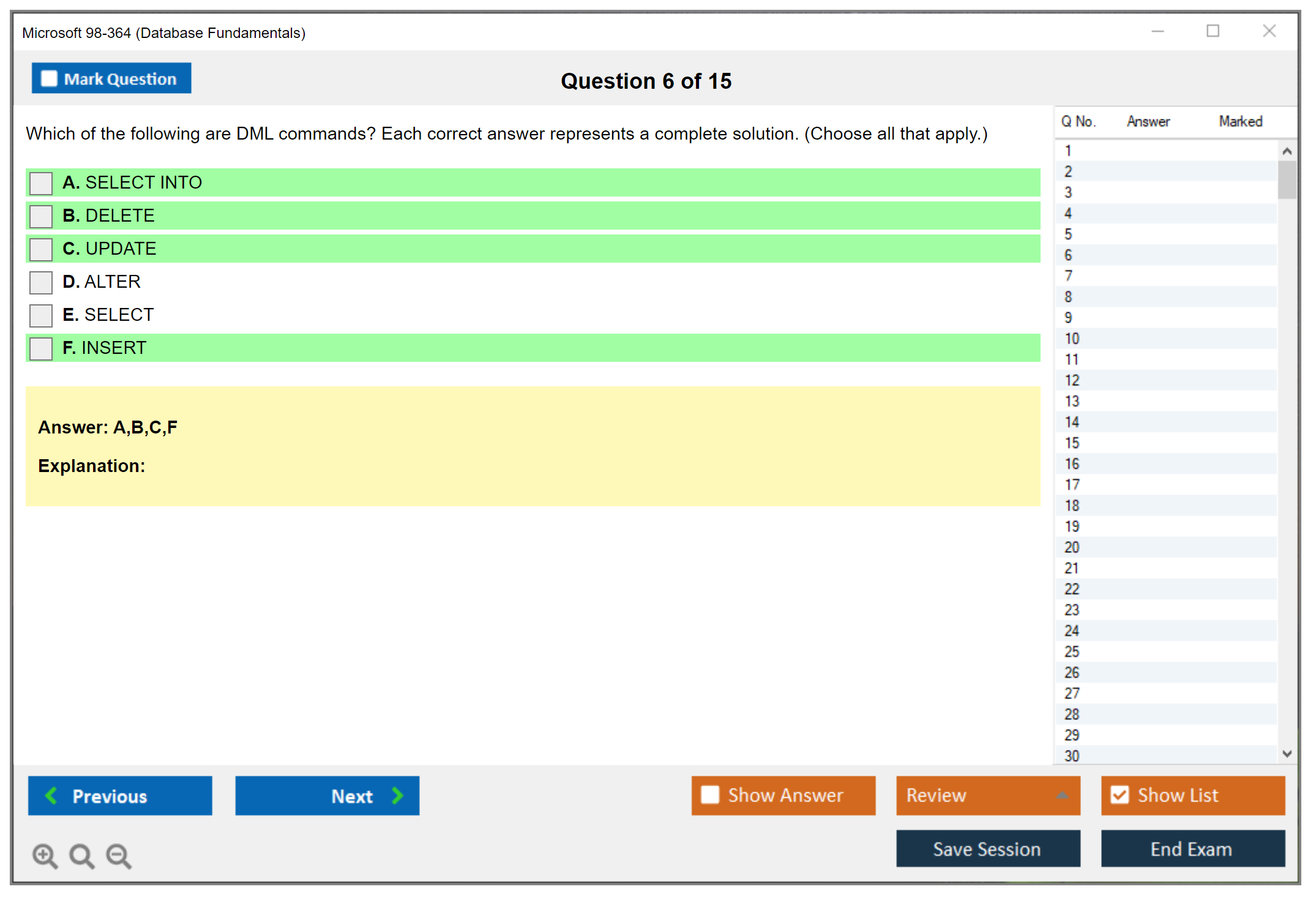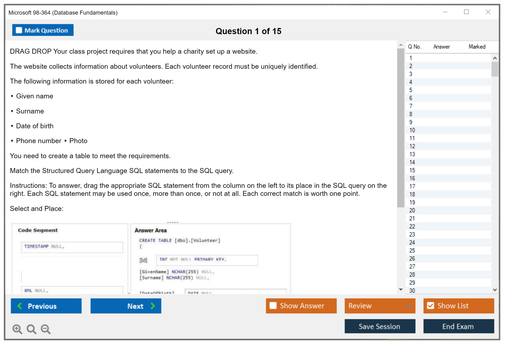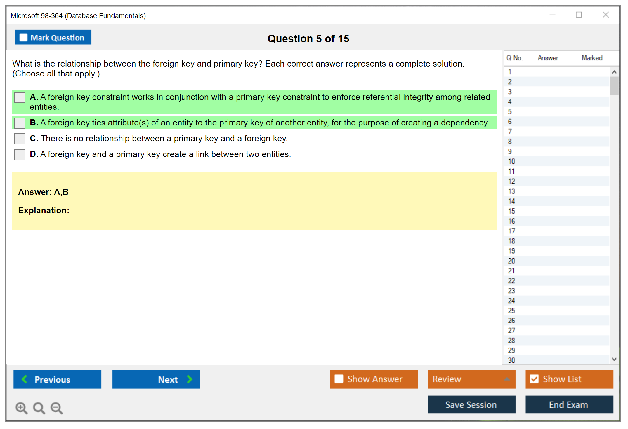 Note: Microsoft 98-364 (Database Fundamentals) will not receive any new updates.