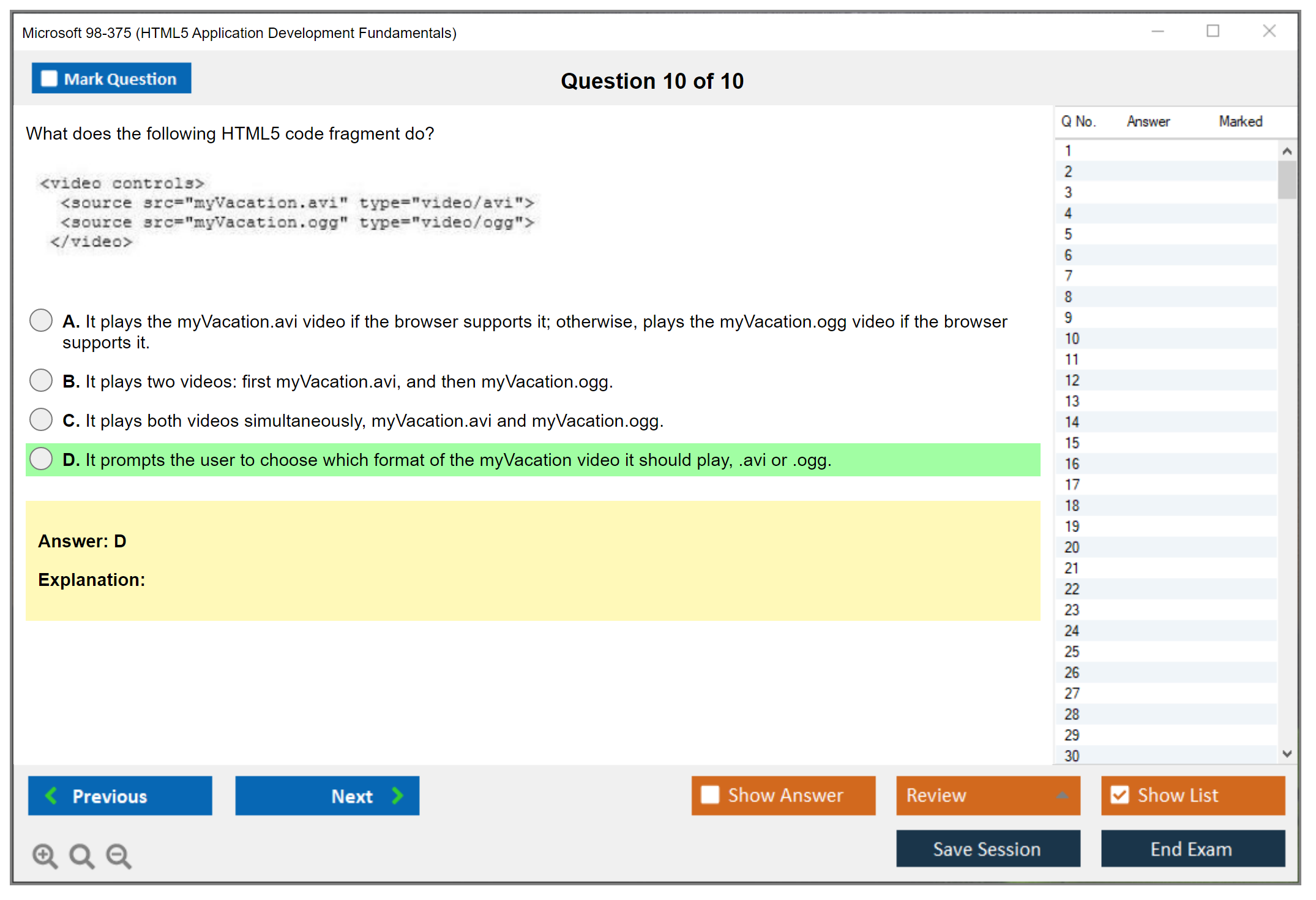 The Microsoft 98-375 (HTML5 Application Development Fundamentals) exam is designed to test the candidate's knowledge and skills in developing applications using HTML5, CSS3, and JavaScript. It covers fundamental concepts of HTML5-based application development.