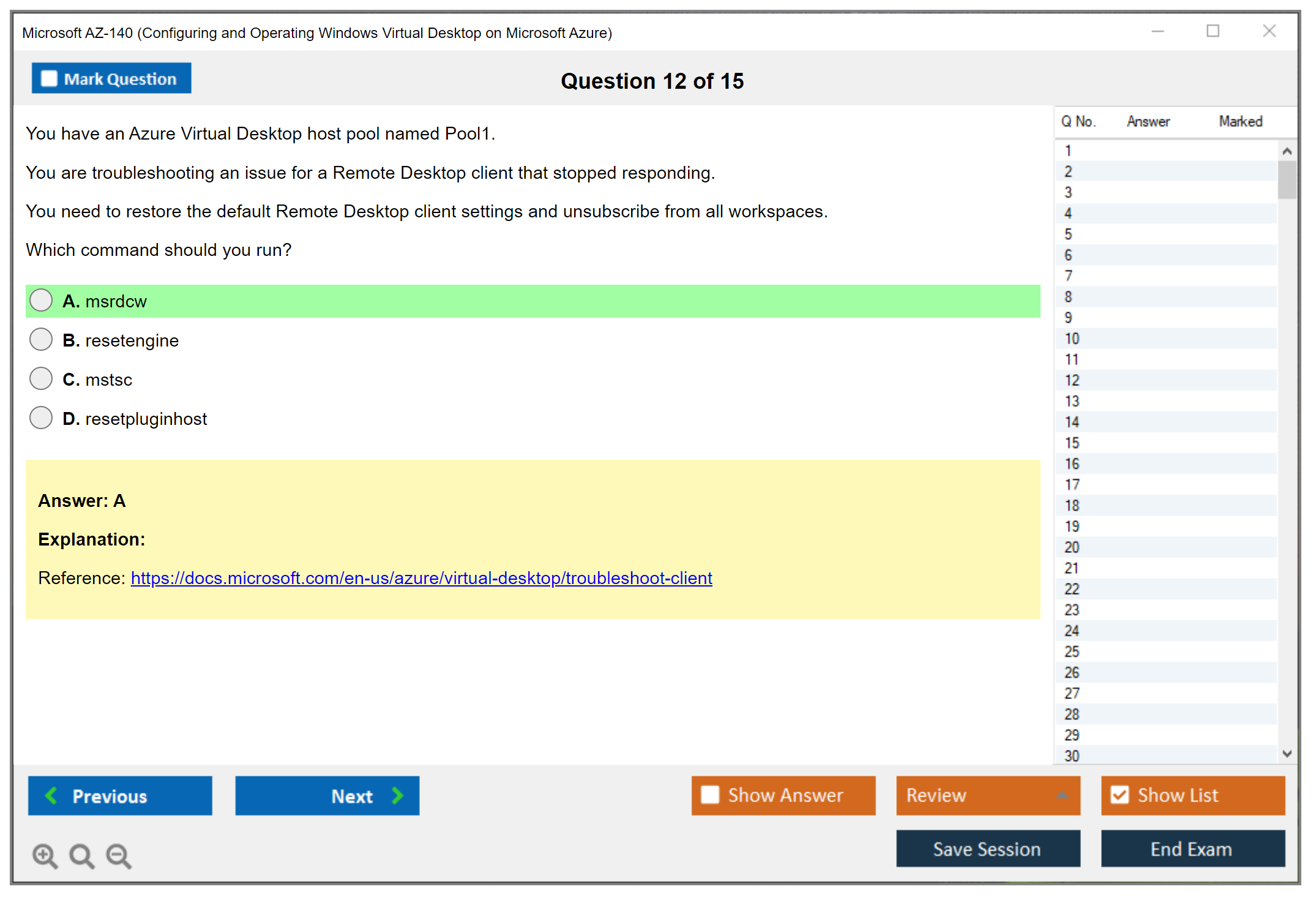 The Microsoft AZ-140 exam is part of the Microsoft Certified: Azure Virtual Desktop Specialty certification track.