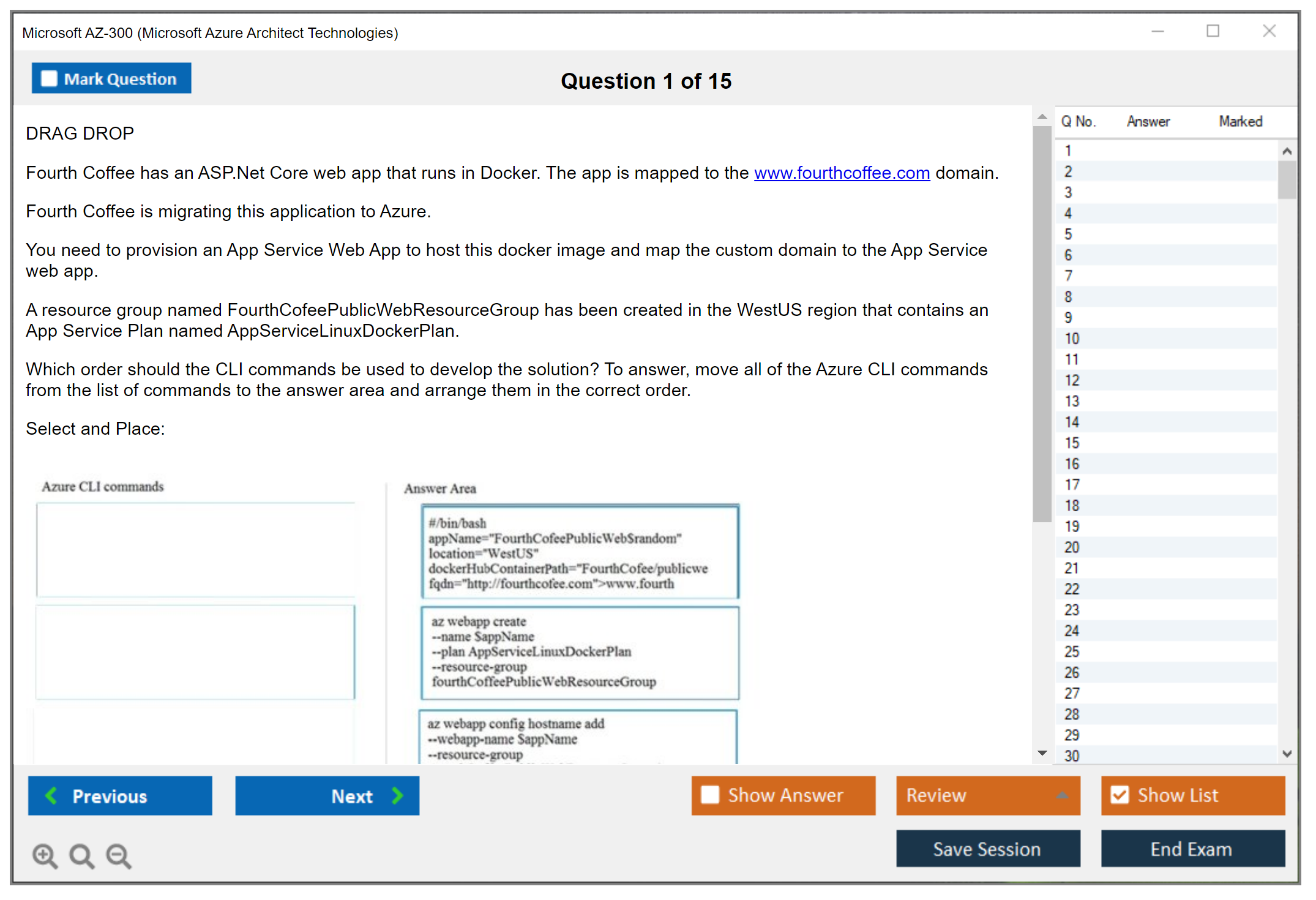 The question format of the Microsoft AZ-300 Exam includes multiple-choice questions, drag and drop, case studies, and other types of questions to assess various skills and knowledge.
