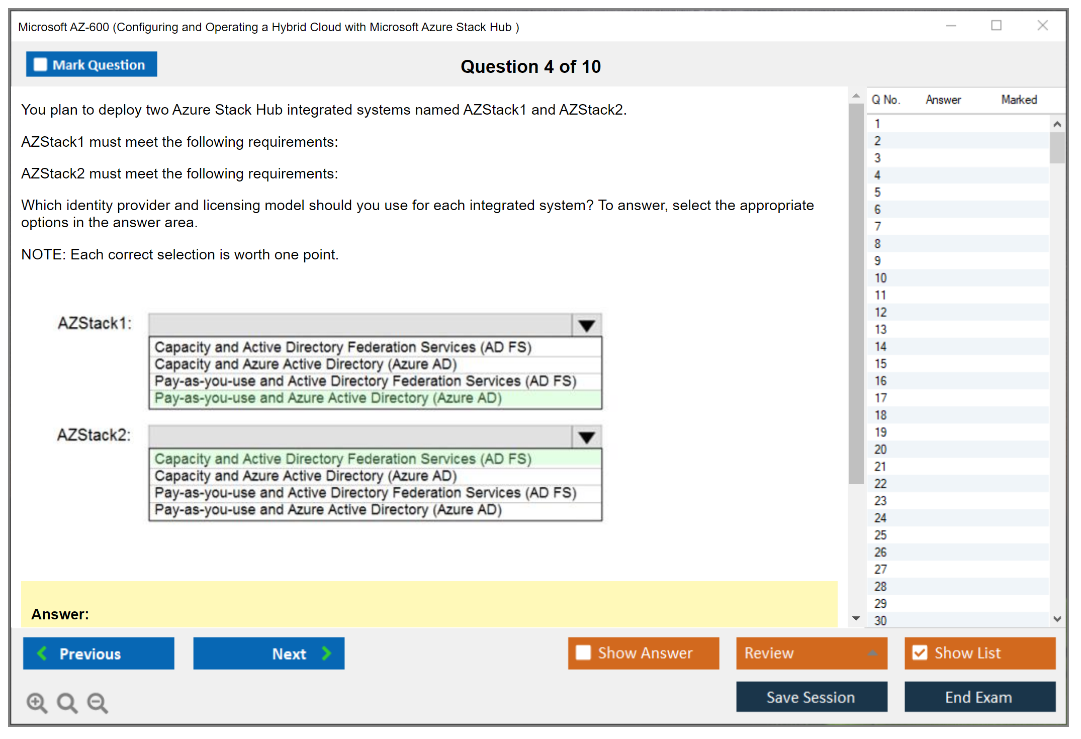 The question format of the Microsoft AZ-600 Exam includes multiple-choice, multiple-response, drag-and-drop, and scenario-based questions.
