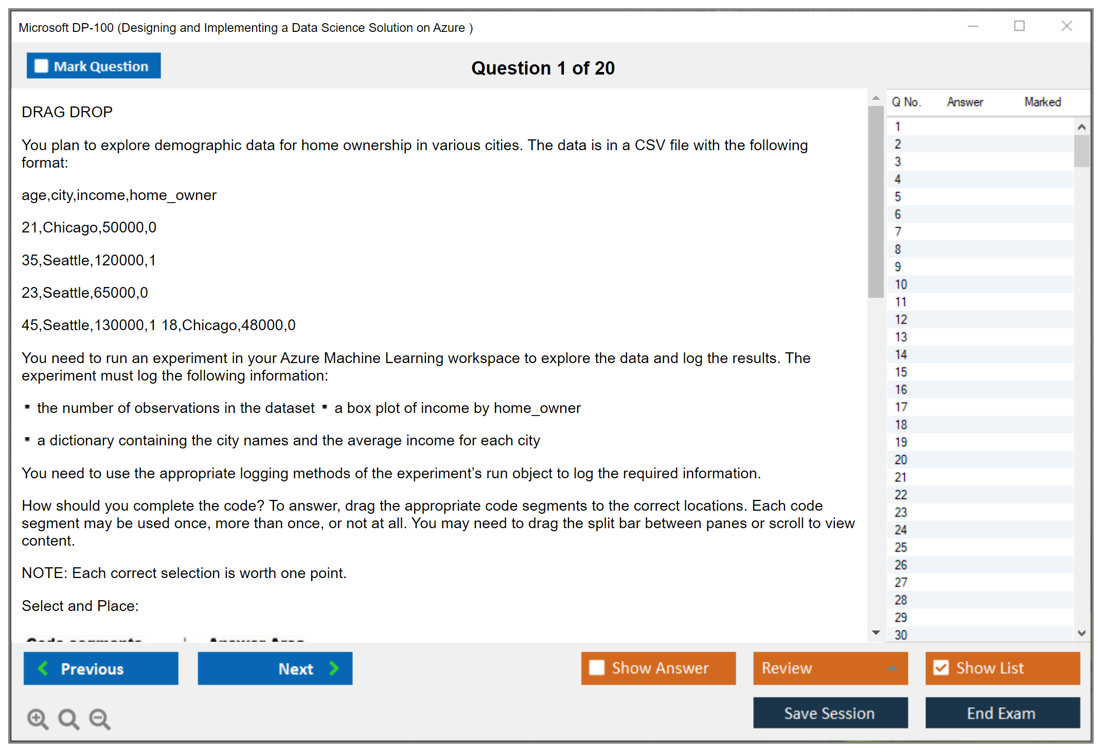 What are the Sample Questions of Microsoft DP-100 Exam?