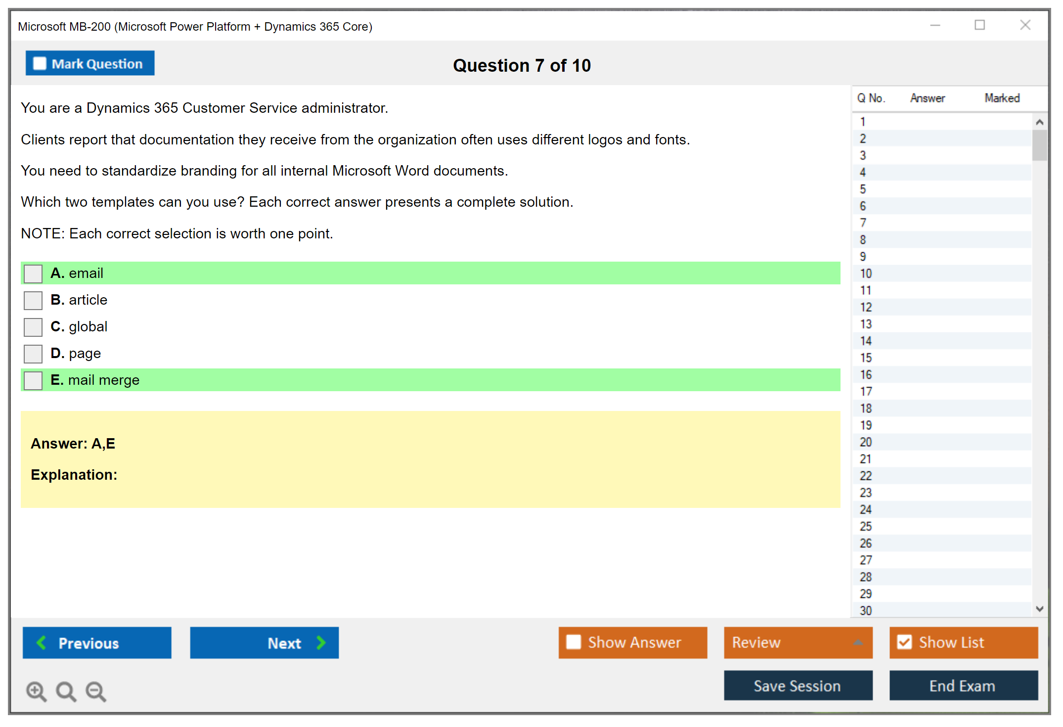 What are the Sample Questions of Microsoft MB-200 Exam?