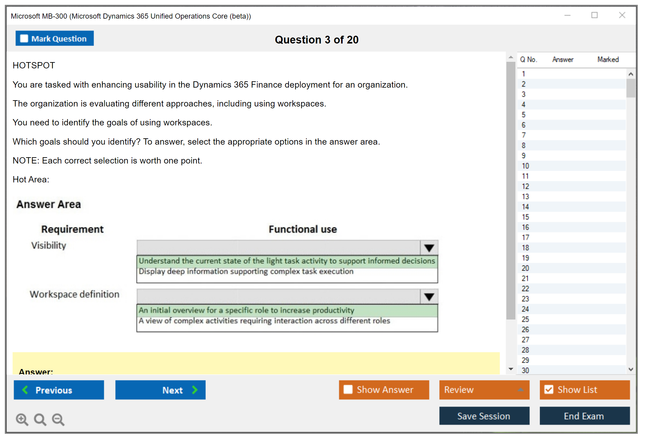 The Microsoft MB-300 exam is a certification exam that assesses a candidate's proficiency in the core functionalities of Microsoft Dynamics 365 Finance and Operations. It is aimed at professionals who work with enterprise resource planning (ERP) systems and are responsible for implementing and managing Dynamics 365 solutions.