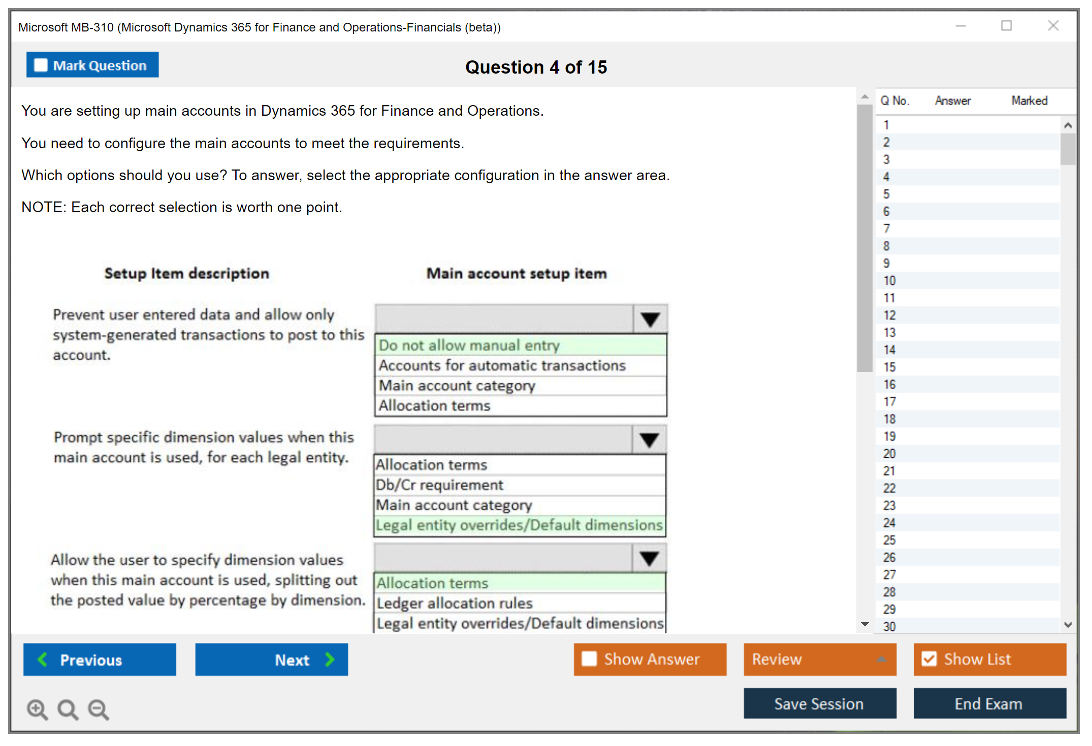 The Microsoft MB-310 exam, also known as Microsoft Dynamics 365 Finance, is designed to assess the knowledge and skills of a candidate in managing and implementing financial operations within Dynamics 365 Finance. This includes tasks such as configuring and using essential components, managing budgets, fixed assets, and financial operations.