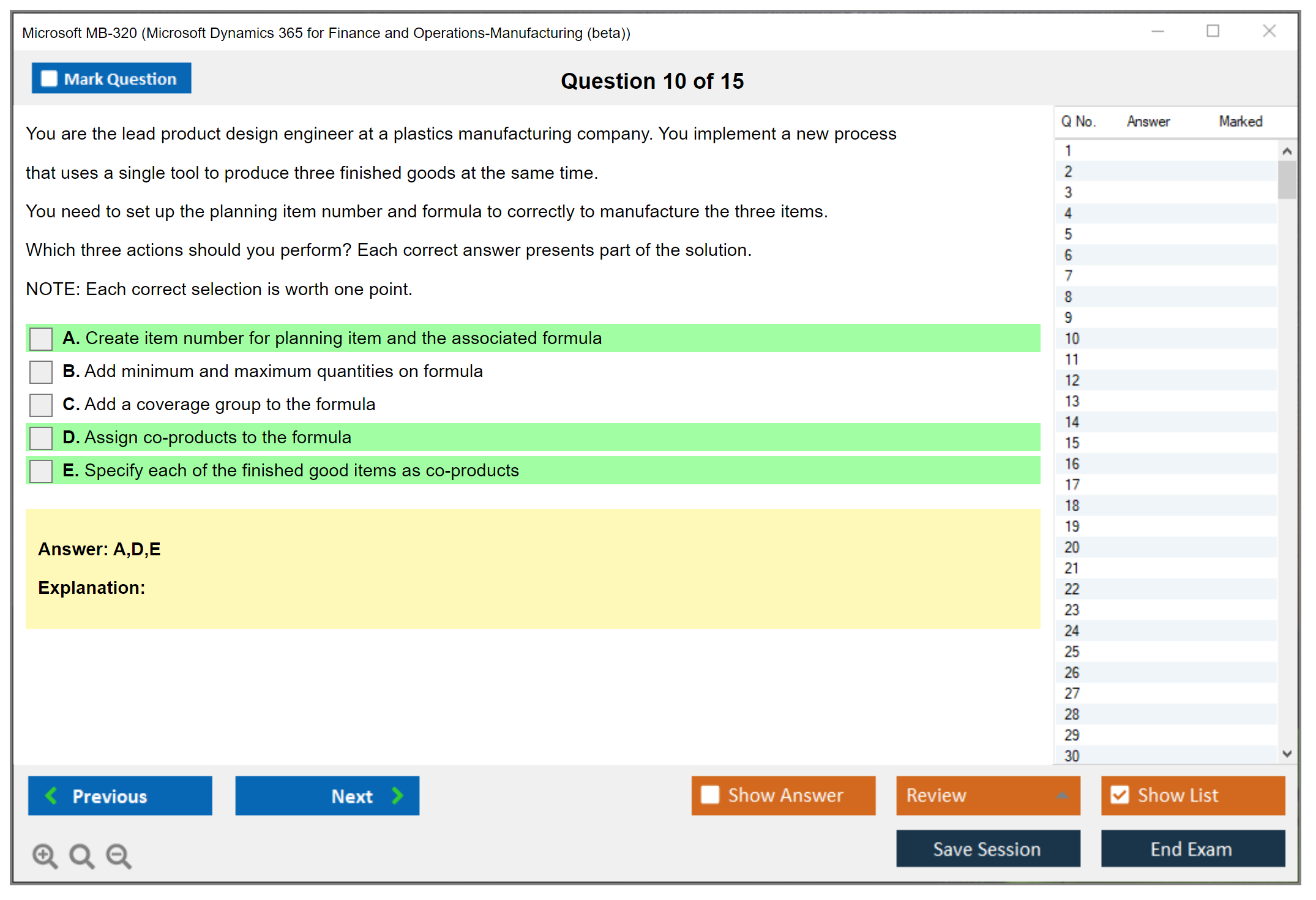 Note: Microsoft MB-320 (Microsoft Dynamics 365 for Finance and Operations-Manufacturing ) will not receive any new updates.