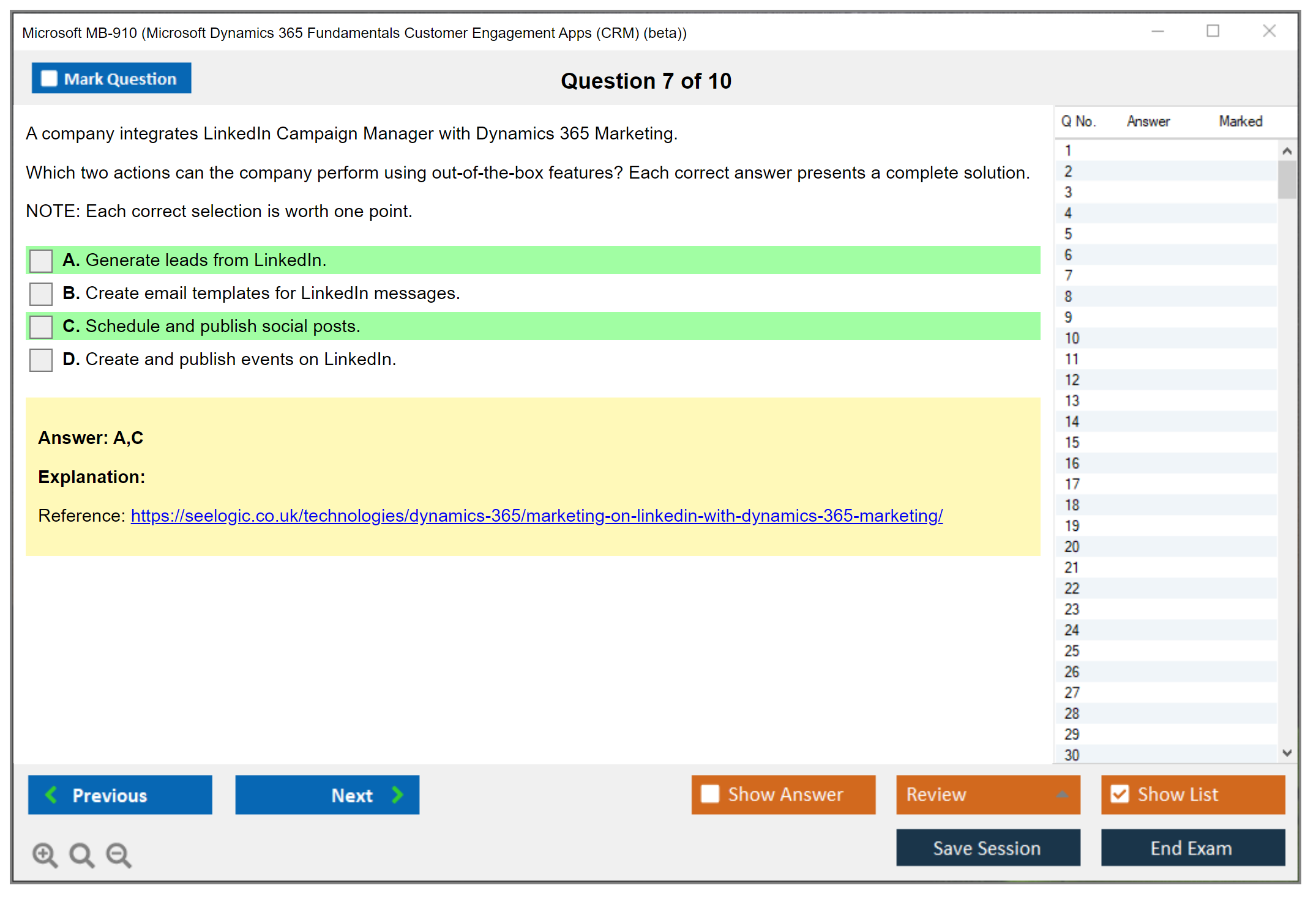 Sample questions for the Microsoft MB-910 exam can be found on the official Microsoft certification page and various study guides and practice test providers.
