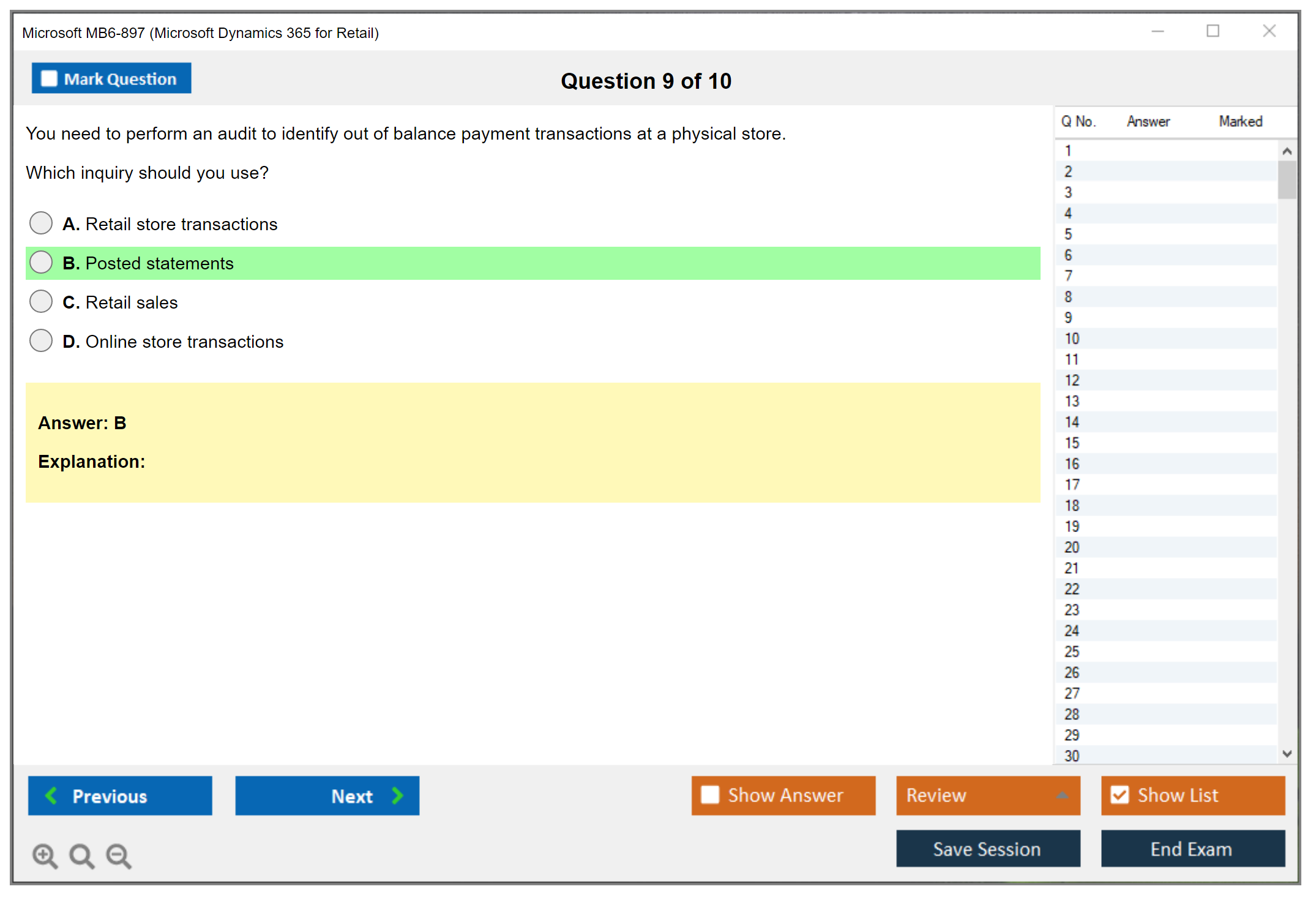 The Microsoft MB6-897 exam, also known as Microsoft Dynamics 365 for Retail, is designed to measure the candidate's ability to accomplish the technical tasks related to retail operations within the Dynamics 365 ecosystem. It is aimed at professionals who implement, use, maintain, or support Microsoft Dynamics 365 for Retail.
