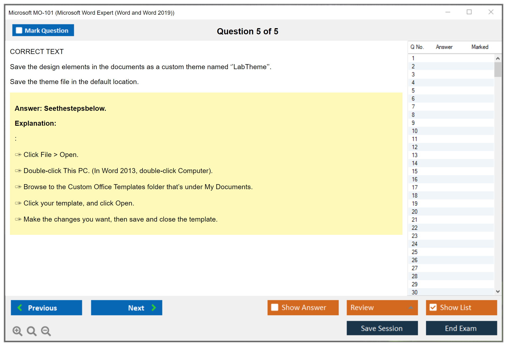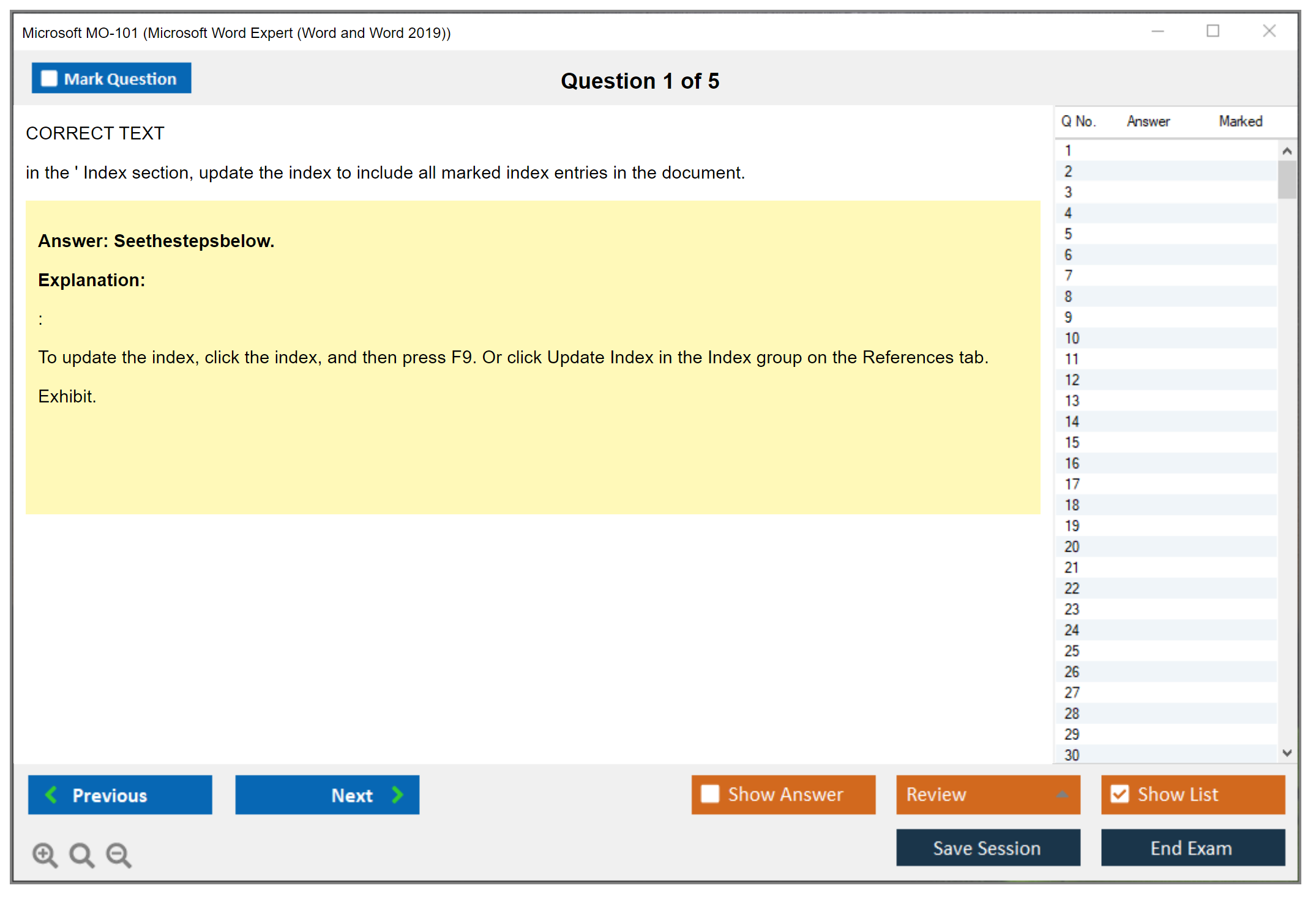 The Microsoft MO-101 (Microsoft Word Expert (Word and Word 2019)) exam is designed to test advanced skills in Microsoft Word. It focuses on the ability to create and manage professional documents for a variety of specialized purposes and situations.
