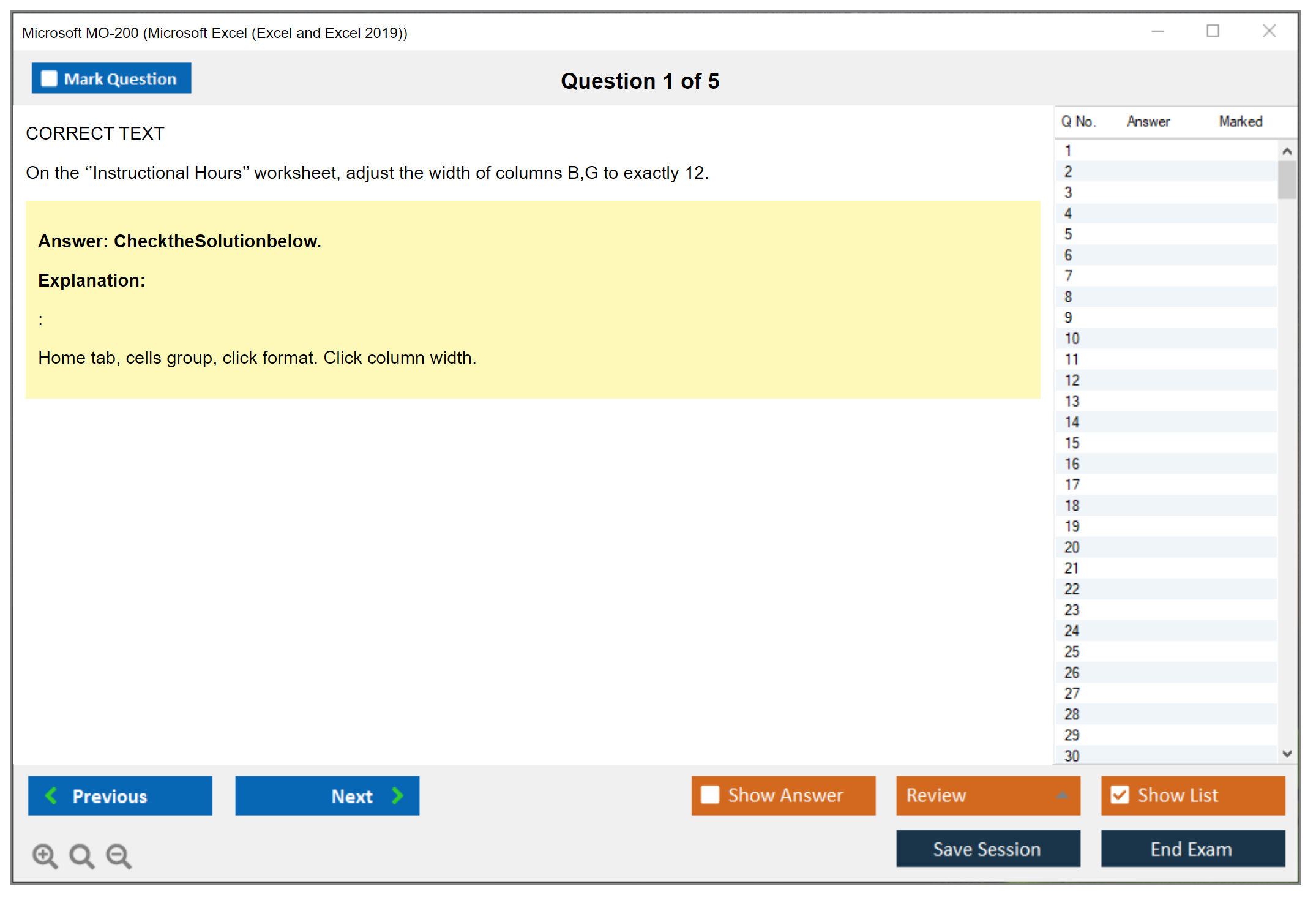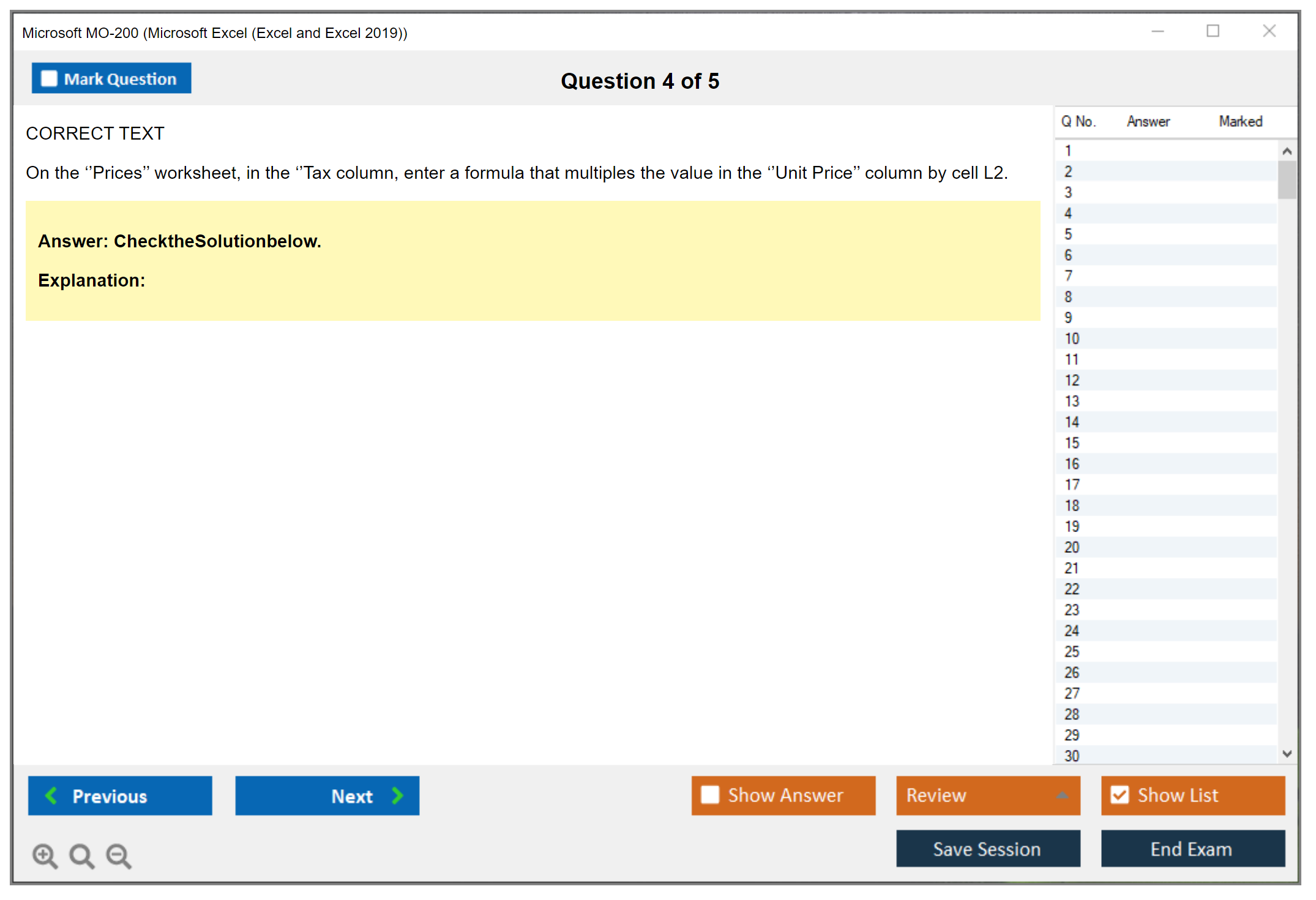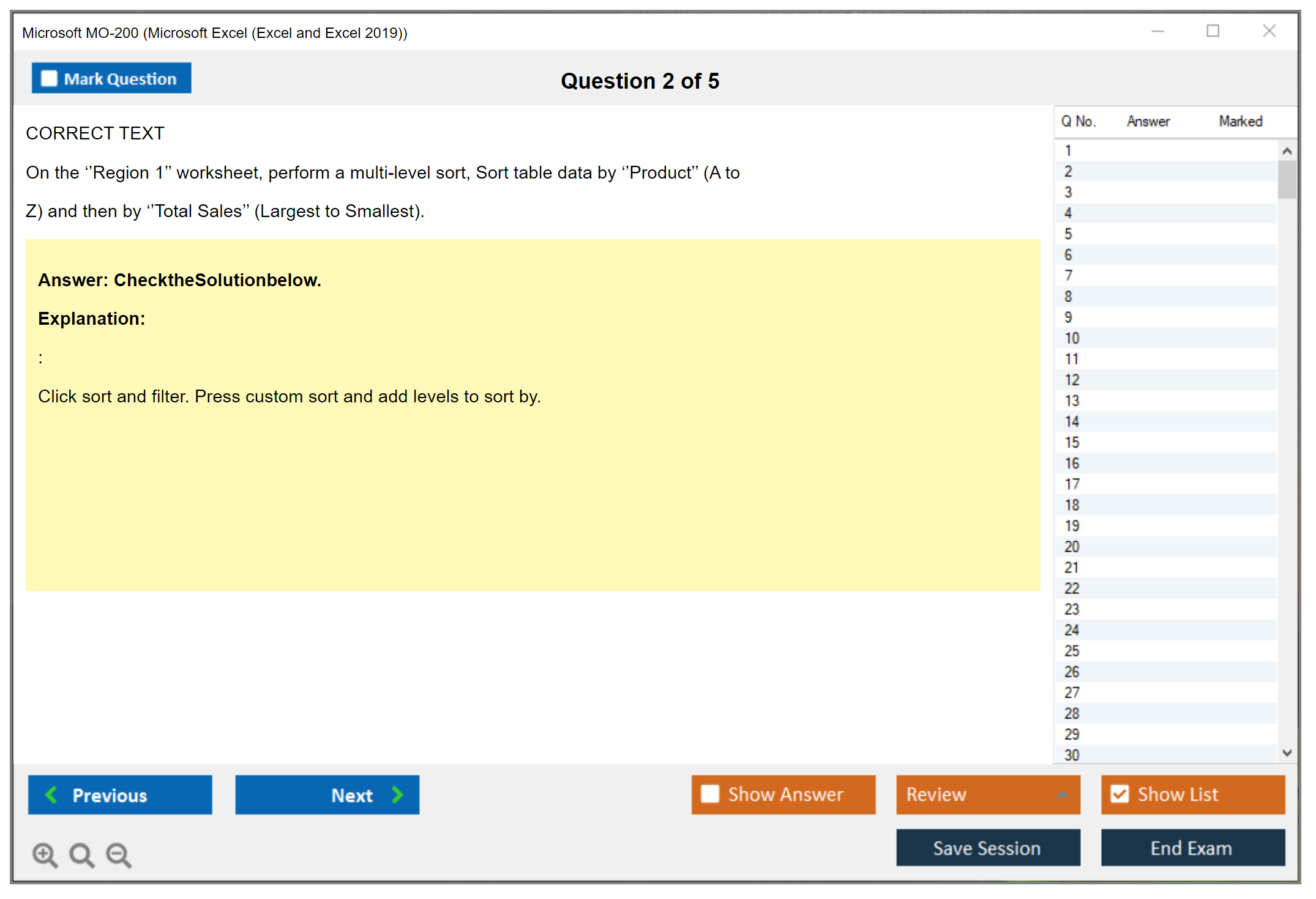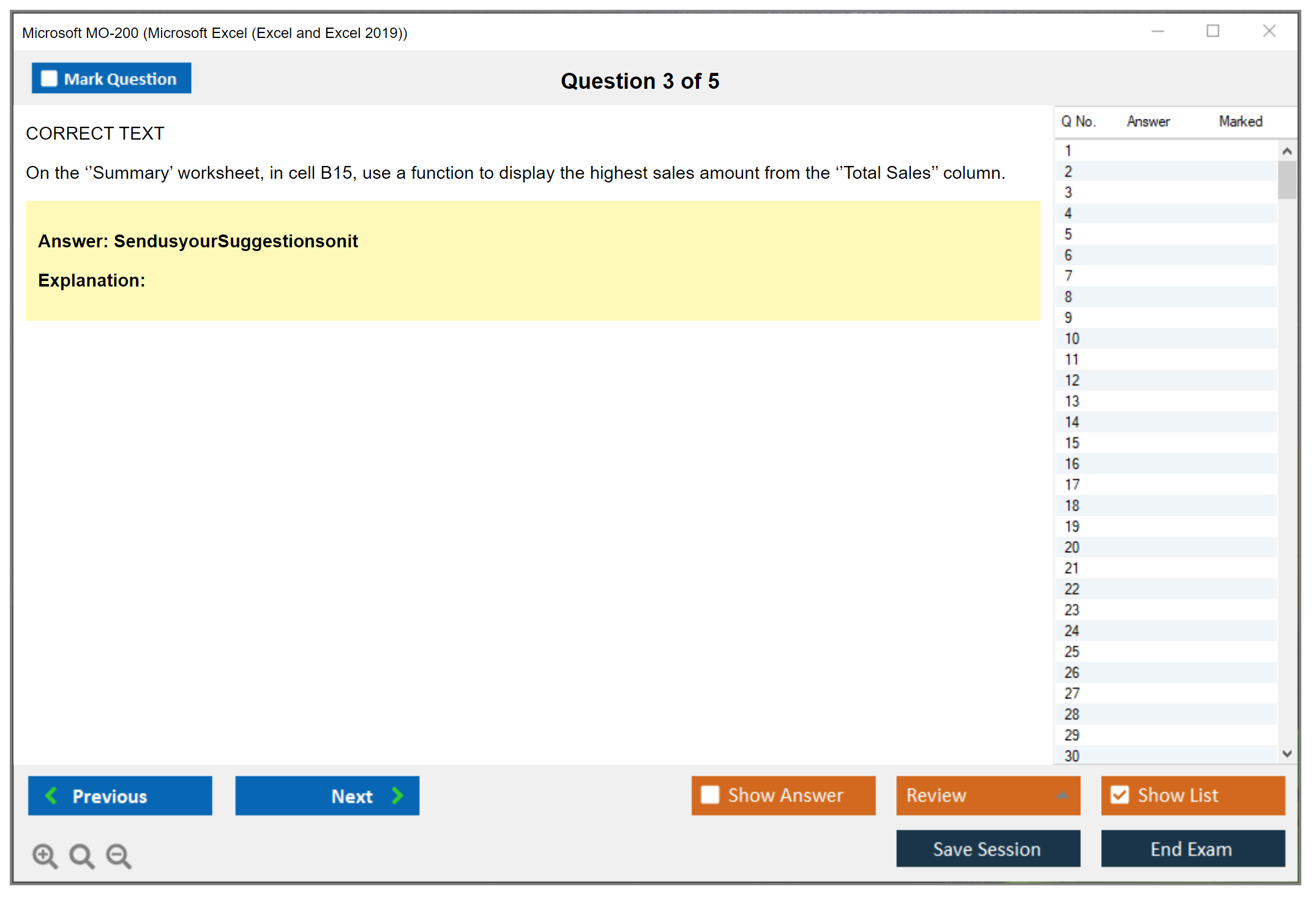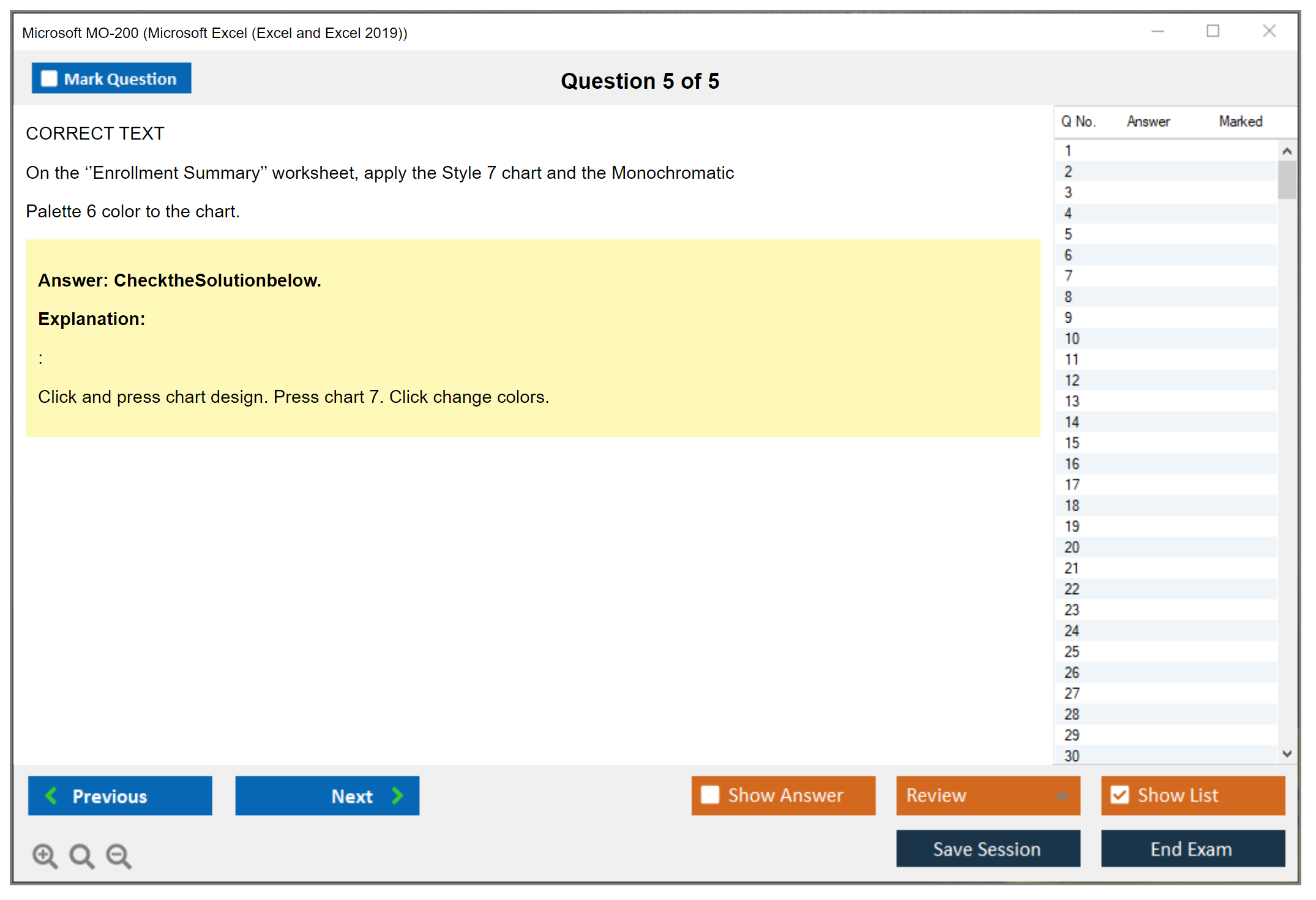 The Microsoft MO-200 exam is designed to certify individuals in the use of Microsoft Excel, including both the 2019 version and the Excel included in Microsoft 365. It is part of the Microsoft Office Specialist (MOS) certification program.