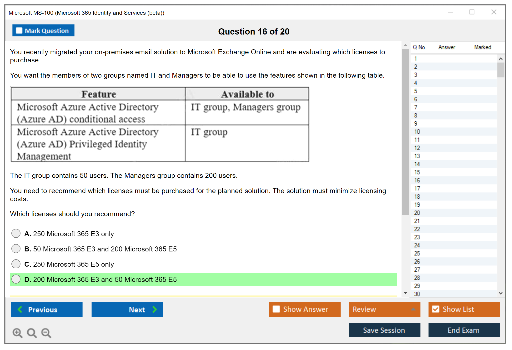 What are the Sample Questions of Microsoft MS-100 Exam?