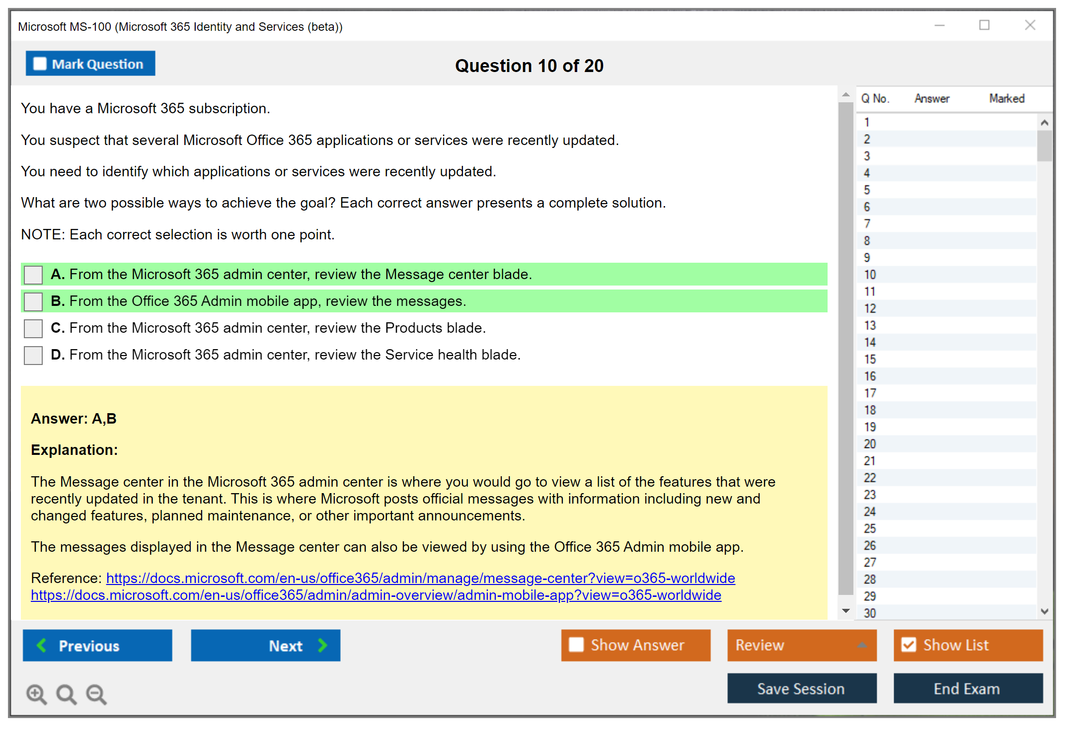 Note: Microsoft MS-100 (Microsoft 365 Identity and Services) will not receive any new updates.