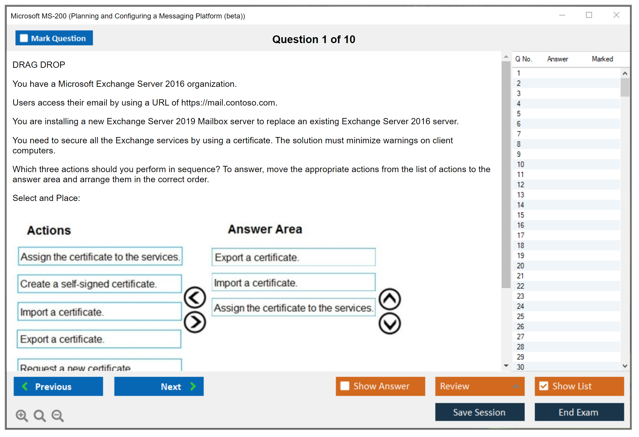 Note: Microsoft MS-200 (Planning and Configuring a Messaging Platform ) will not receive any new updates.