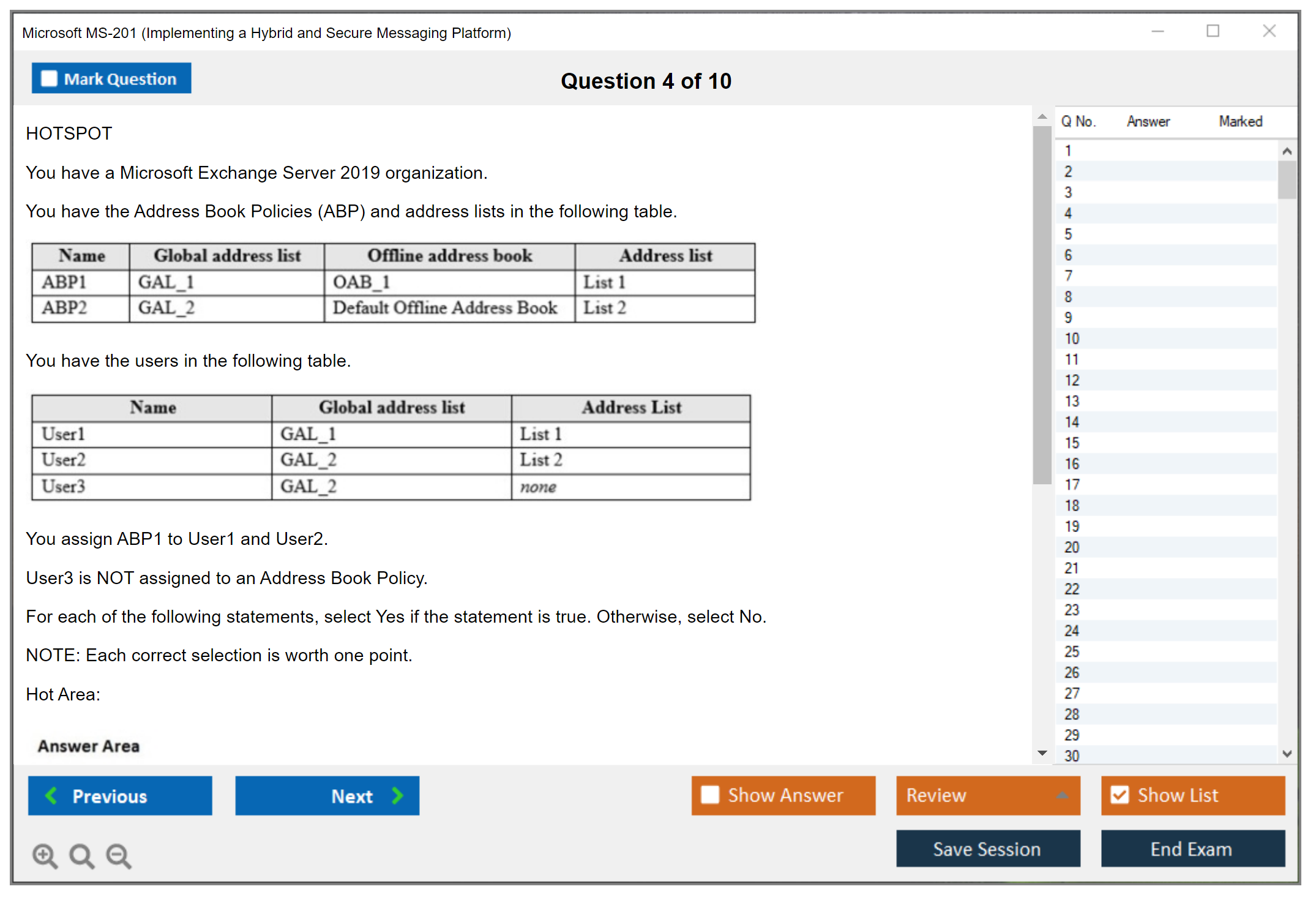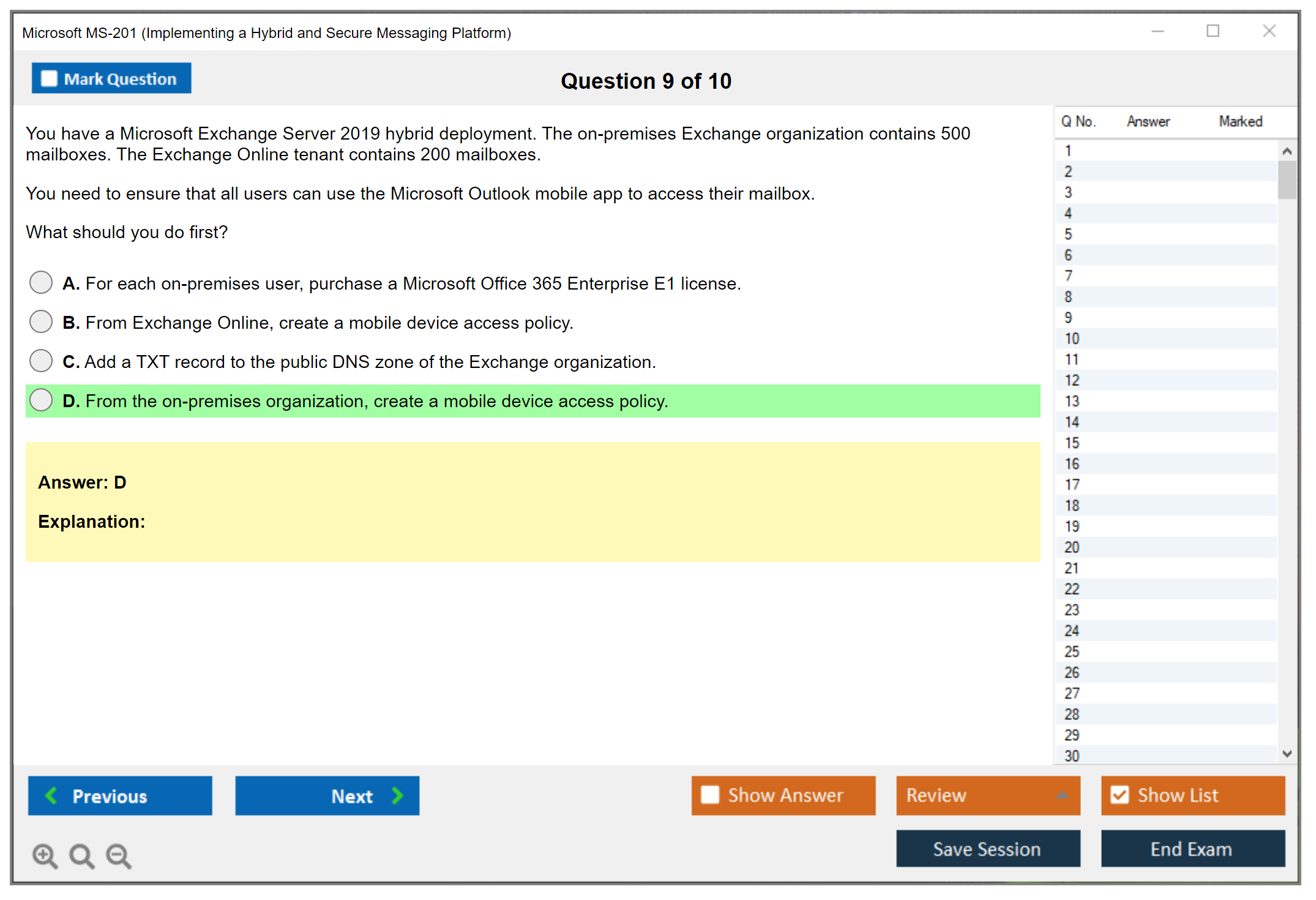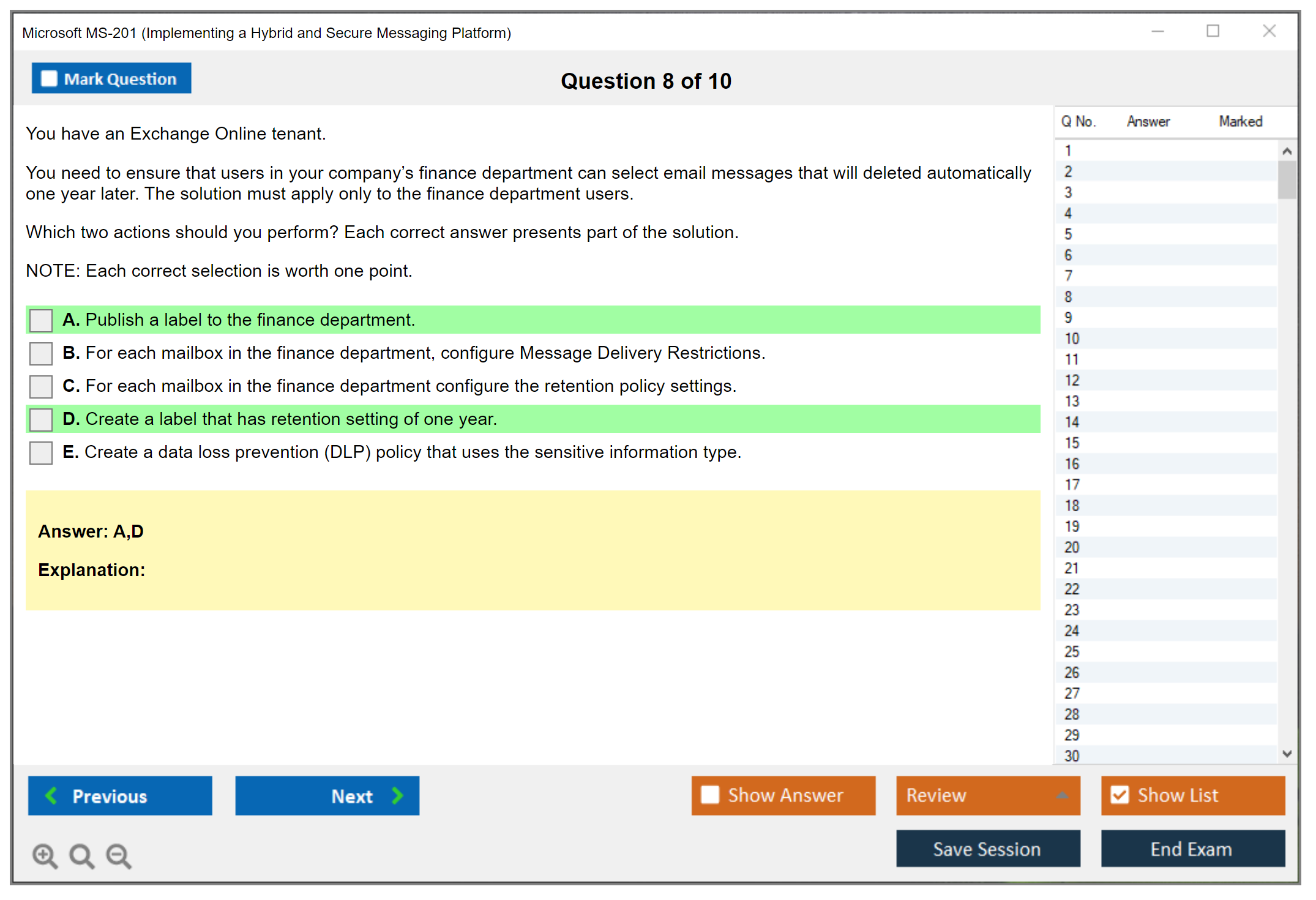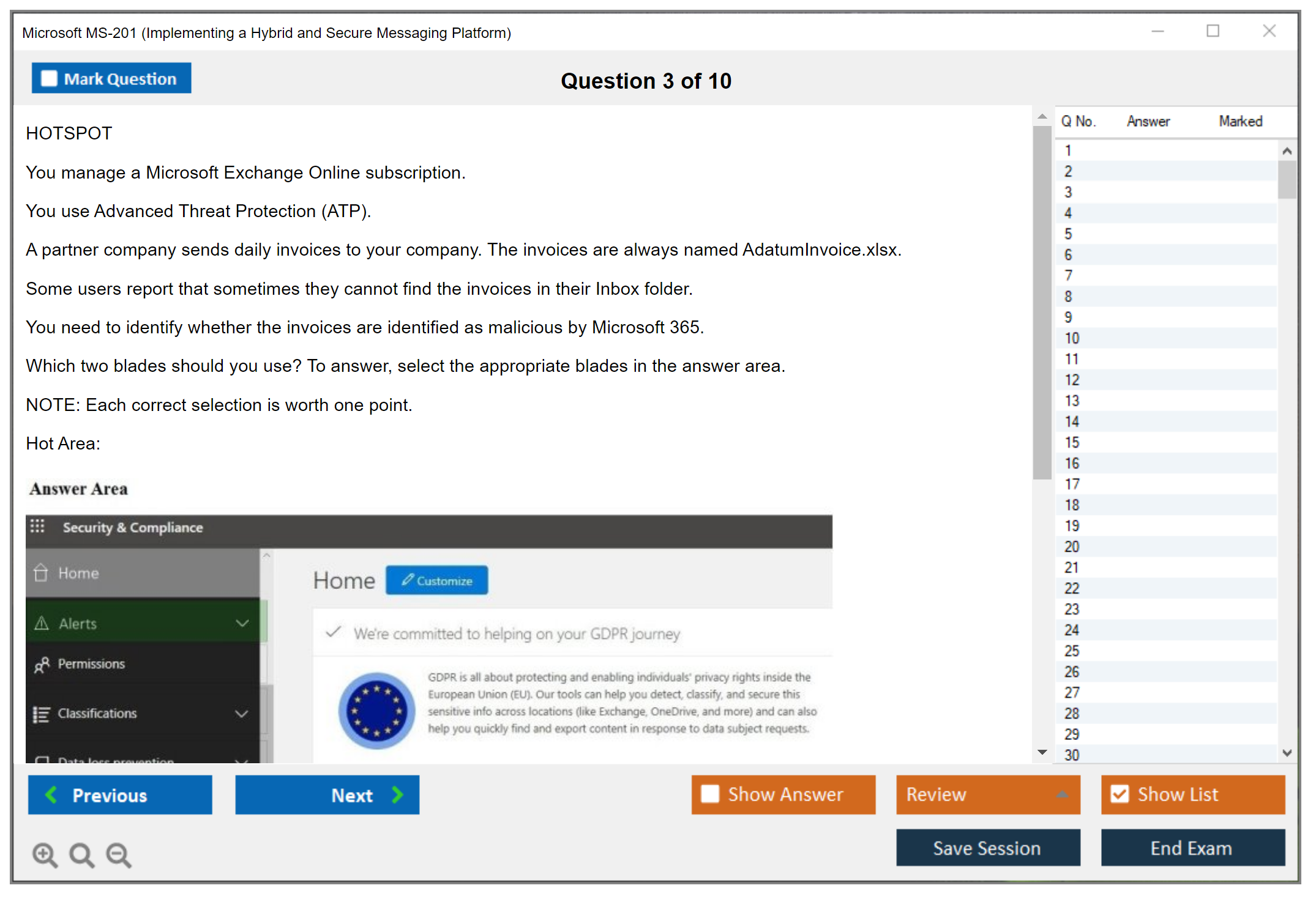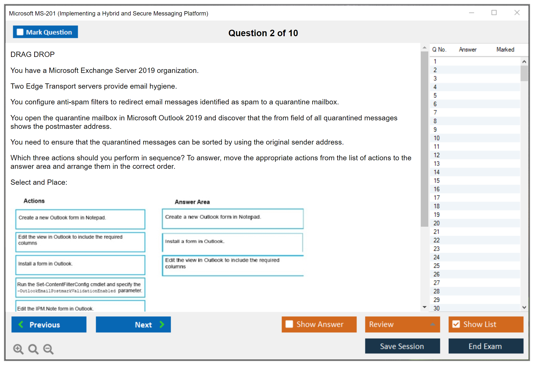 The Microsoft MS-201 (Implementing a Hybrid and Secure Messaging Platform) exam is designed to assess the skills and knowledge required to manage, secure, and troubleshoot a hybrid messaging environment. It covers various aspects of messaging infrastructure, including mail flow, security, compliance, and hybrid configuration.