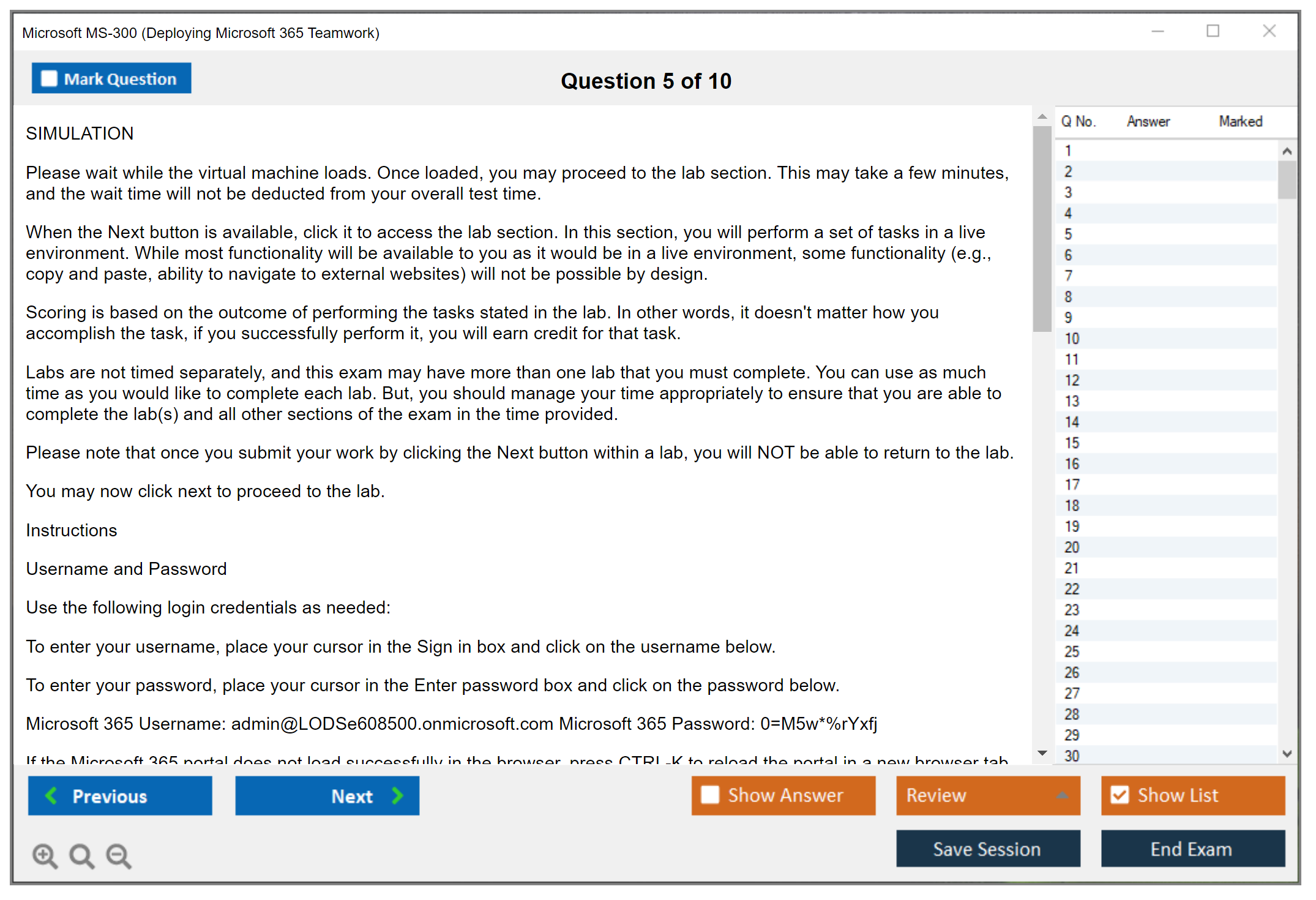 The Microsoft MS-300 Exam typically consists of 40-60 questions.