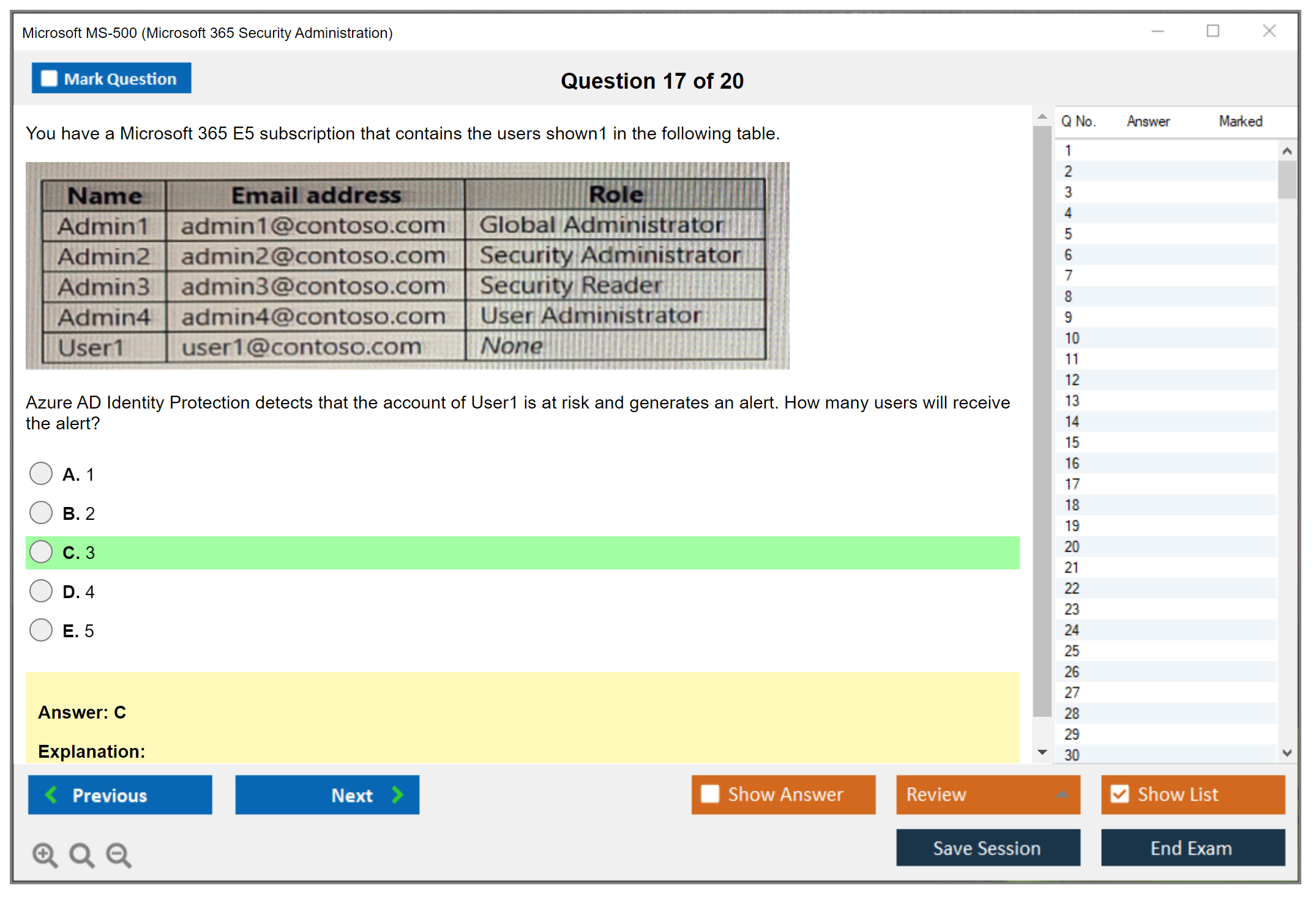 What are the Sample Questions of Microsoft MS-500 Exam?