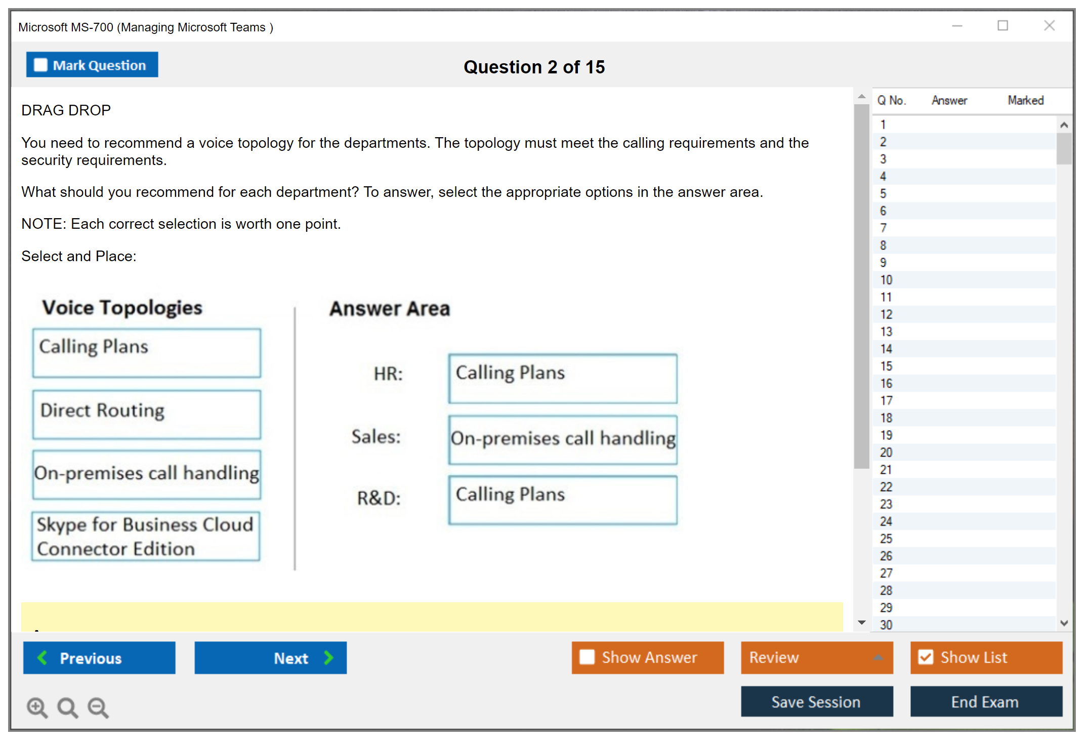 The question format of the Microsoft MS-700 Exam includes multiple-choice, multiple-response, drag and drop, case studies, and build list questions.