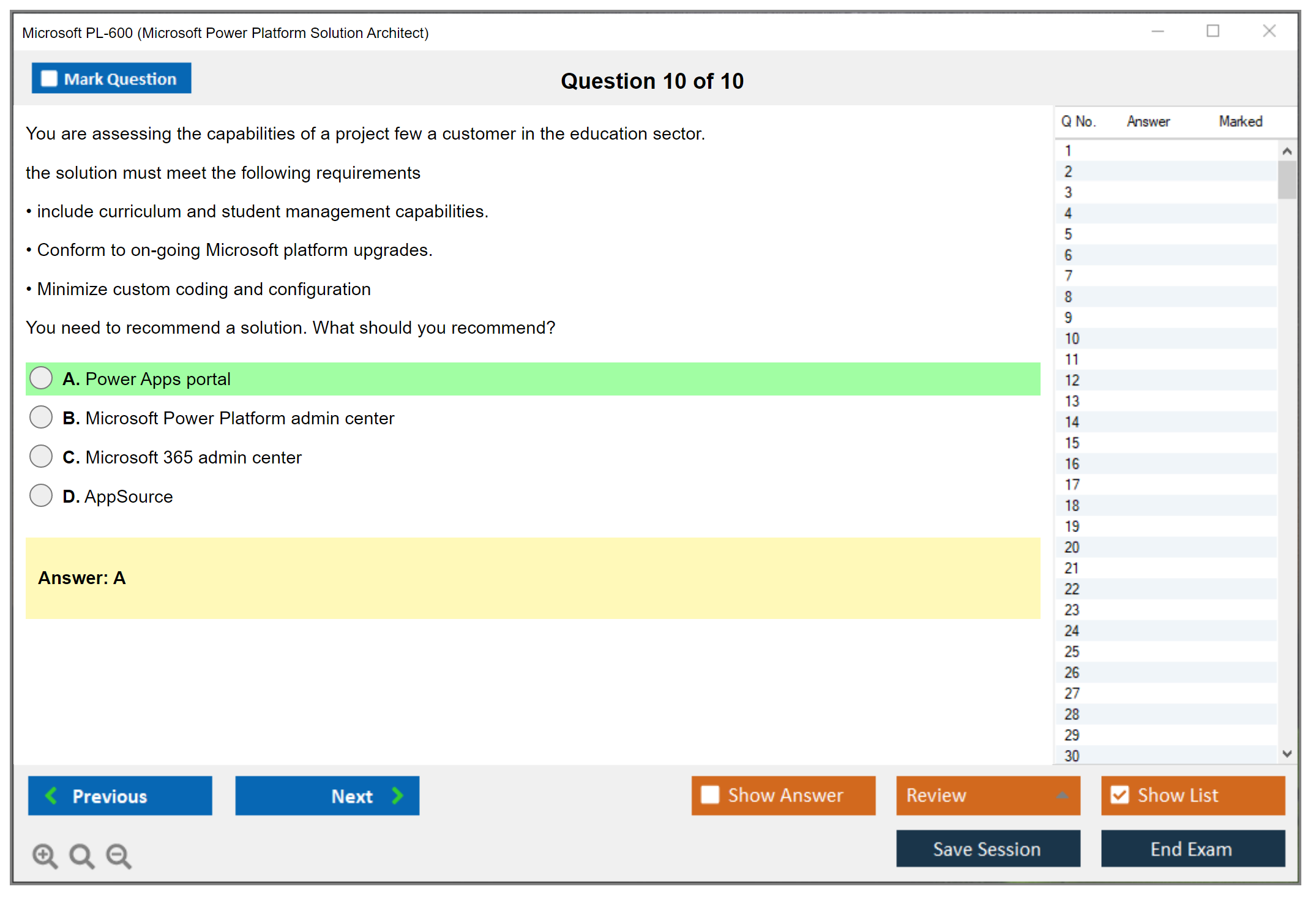 The Microsoft PL-600 (Microsoft Power Platform Solution Architect) Exam is designed for professionals who want to validate their skills and knowledge in designing and implementing solutions using Microsoft Power Platform. This exam measures the ability to lead successful implementations and focus on how solutions address the broader business and technical needs of organizations.