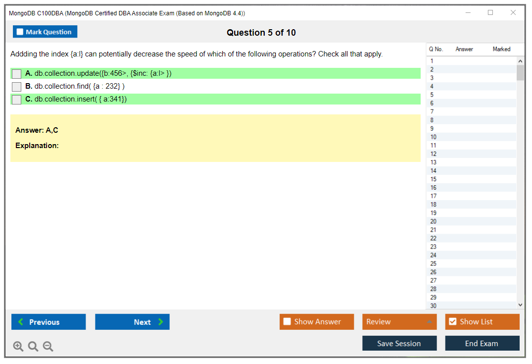 What are the Sample Questions of MongoDB C100DBA Exam?