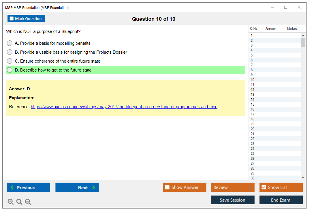 The MSP Foundation Exam (5th Edition) is designed to test a candidate's understanding of the Managing Successful Programmes (MSP) framework, principles, and processes. It is intended for those who are involved in program management and those who want to obtain a recognized certification in this field.