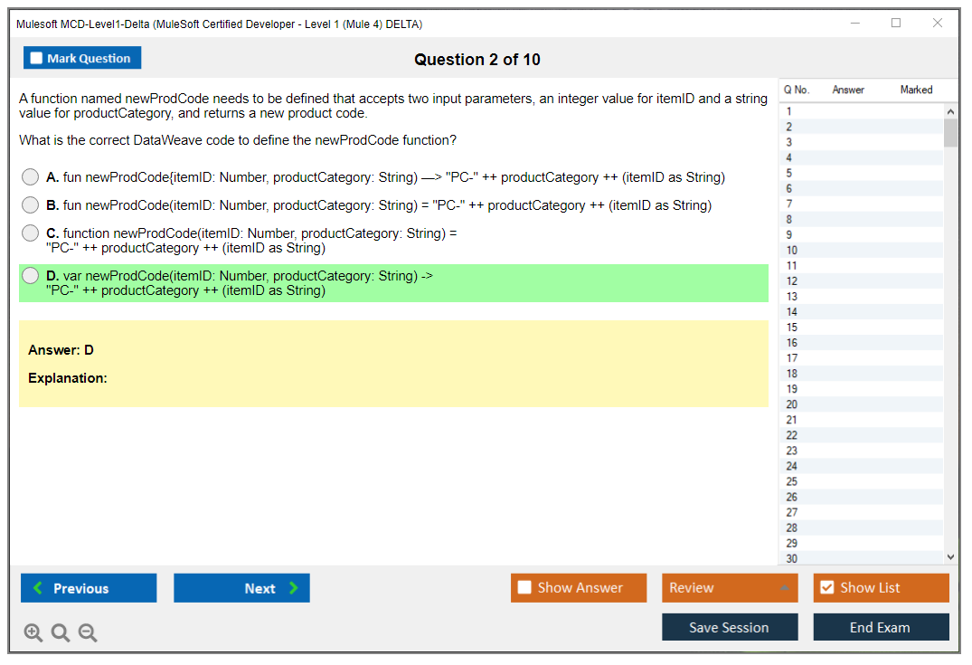 What is the Question Format of Mulesoft MCD-Level1-Delta Exam?