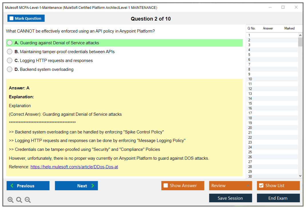 The Mulesoft MCPA-Level-1-Maintenance exam is a certification exam for experienced architects who need to demonstrate their ability to design, implement, and manage MuleSoft solutions, ensuring they are current with the latest platform features and best practices.