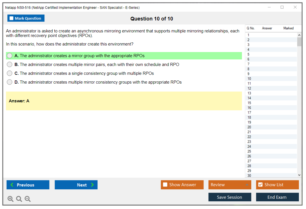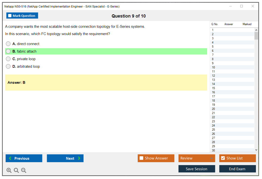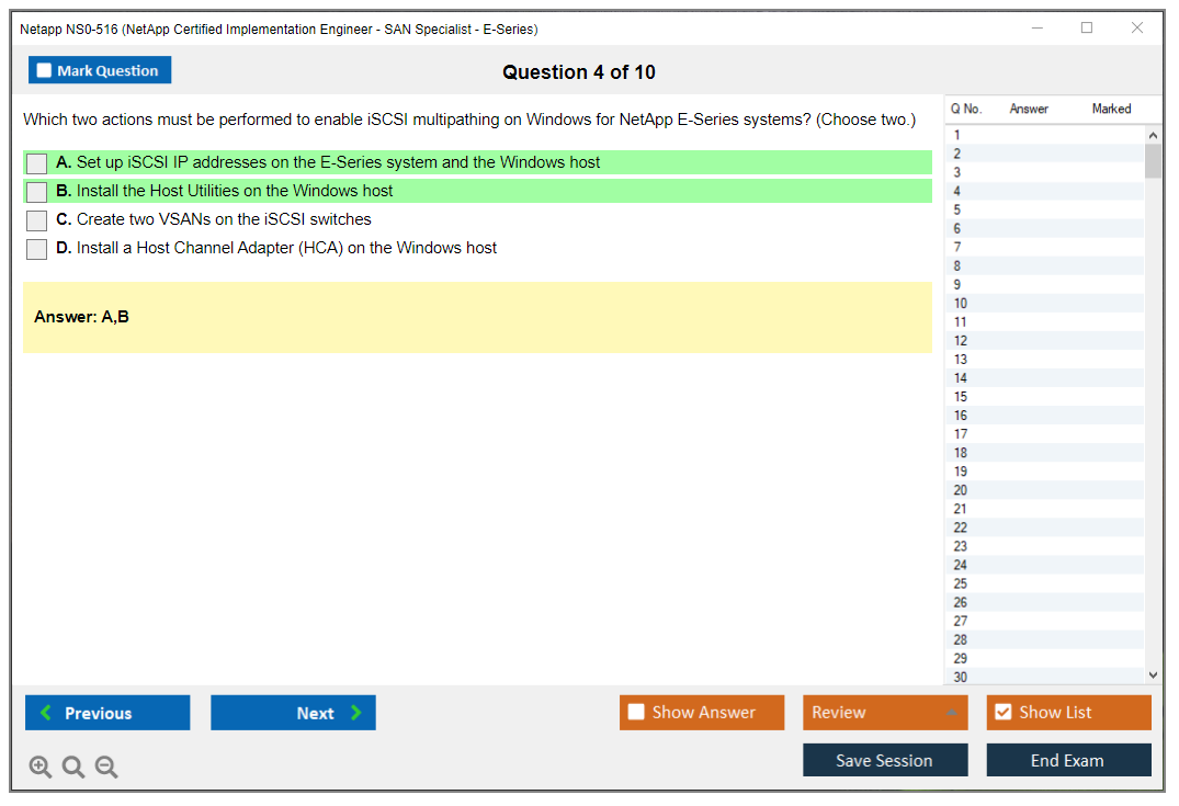 The NetApp NS0-516 exam is aimed at professionals who specialize in SAN implementation using NetApp E-Series storage solutions. It certifies that the candidate has the necessary expertise to install, configure, and manage SAN solutions effectively.