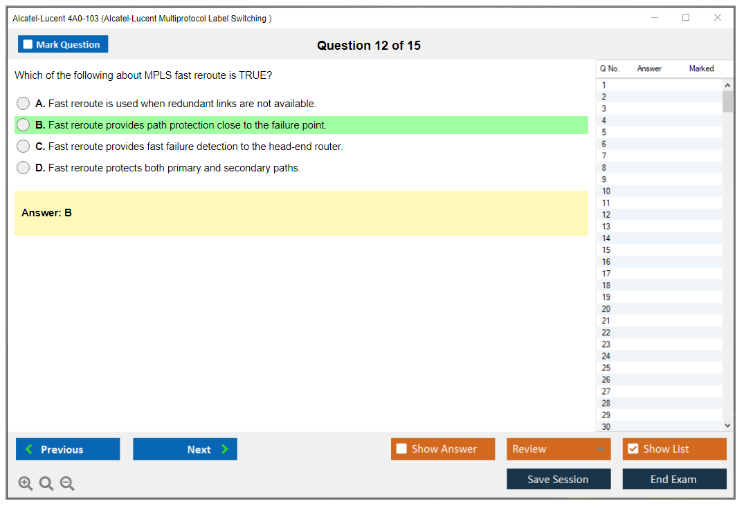The Alcatel-Lucent 4A0-103 (Alcatel-Lucent Multi Protocol Label Switching) Exam is designed to test the candidate's knowledge and skills in implementing and managing MPLS networks. This certification is part of the Alcatel-Lucent Network Routing Specialist II (NRS II) program.